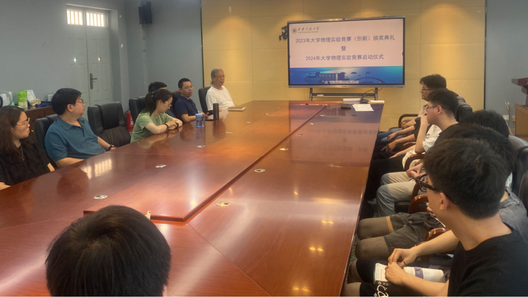 2024年5月13日中午,AC米兰中文在物理实验楼430会议室举行了2023年全国大学生物理实验竞赛获奖表彰暨2024年大学生物理实验竞赛启动宣讲会。AC米兰中文副院长成鹏飞教授、物理实验教学中心刘汉臣教授、李连碧教授,2023获奖师生代表及2024参赛师生代表参加了会议。会议由物理实验教学中心副主任卢定泽教授主持。