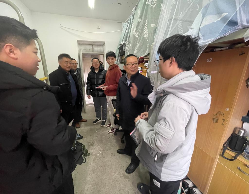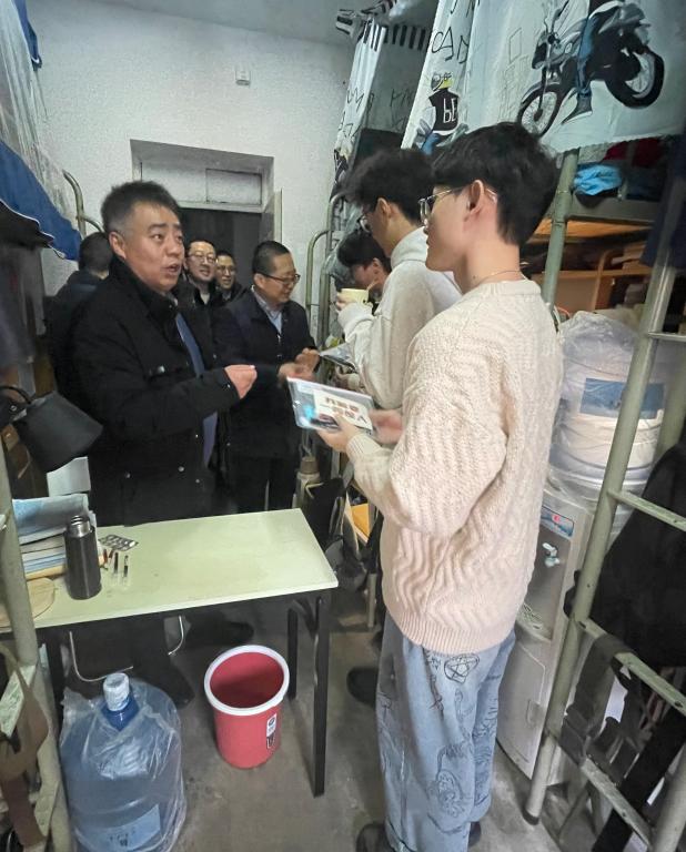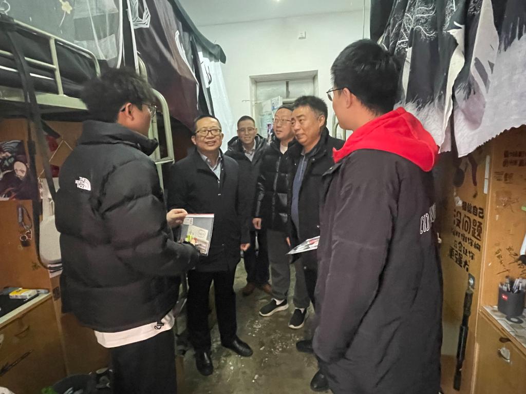 走访过程中,陈宣对同学们勤奋刻苦、认真备考表示了关心和肯定,同时询问了同学们的生活状况以及备考中遇到的实际困难,并鼓励同学们合理规划时间,做到劳逸结合,以平稳的心态、饱满的精神状态迎接最后的冲刺,全力以赴完成考研战场的最后“一公里”。马盈仓为同学们加油鼓劲,就同学们的学习进度、身体状态、生活情况等问题与同学们进行亲切交流,希望同学们要锚定目标,坚定信念;注重身心健康,强健体魄;主动沟通交流,扎实备考,并预祝同学们取得好成绩,实现学业更上一层楼的目标。文毅、冯进钤分别就冬季传染病预防、宿舍用电安全等对同学们做了温馨提醒。