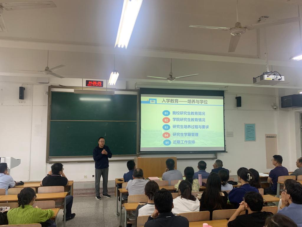会上,陈宣以《路虽远行则将至、事虽难做则必成》为题做了欢迎致辞,与同学们分享了自身学习工作中的体会,激励同学们自信、诚信、互信。马盈仓详细的介绍了学院的学科专业、师资队伍、教学与科研、人才培养、对外合作交流、学院活动等,勉励同学们做好规划、勇于挑战、善于沟通。冯进钤、文毅还分别就研究生培养及日常管理相关的内容给同学们做了详细的解读。