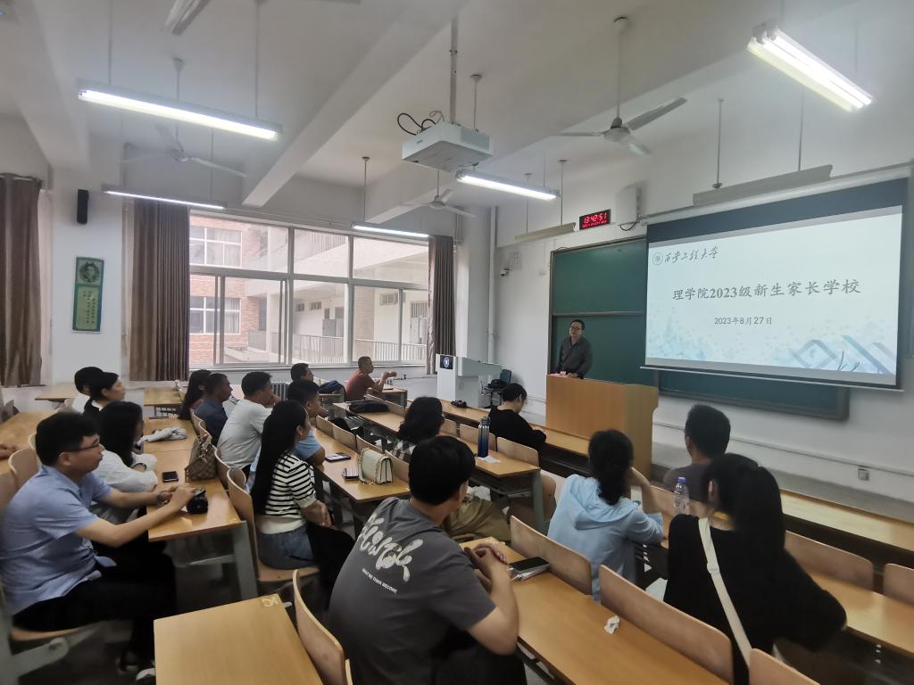 会上,马盈仓代表学院对新生家长的到来表示诚挚的欢迎与感谢,他从校园环境、发展历史、师资队伍、科研教学成果、学科建设、专业发展前景等方面对学校和学院总体情况进行了全面介绍。同时,他希望与会家长们在未来不断为学院发展提出宝贵的意见与建议。成鹏飞结合学籍管理相关文件,详细解读了学分绩点、课程考核、学籍管理、学位授予条件、专业分流和转专业、推荐免试研究生等,使家长们对本科学习有基本了解。边冠莉围绕大学生心理健康现状、心理问题形成原因、家校协同呵护学生成长三个方面开展了讲解,提醒家长们多关注学生心理,多和学生沟通,共同努力让每一位大学生能够积极、乐观、健康地度过四年大学生活。文毅就学风建设、宿舍安全、防范电信诈骗、心理健康和资助工作等几方面向家长们进行了介绍,他还就家长们关注的各类问题进行了一一解答。