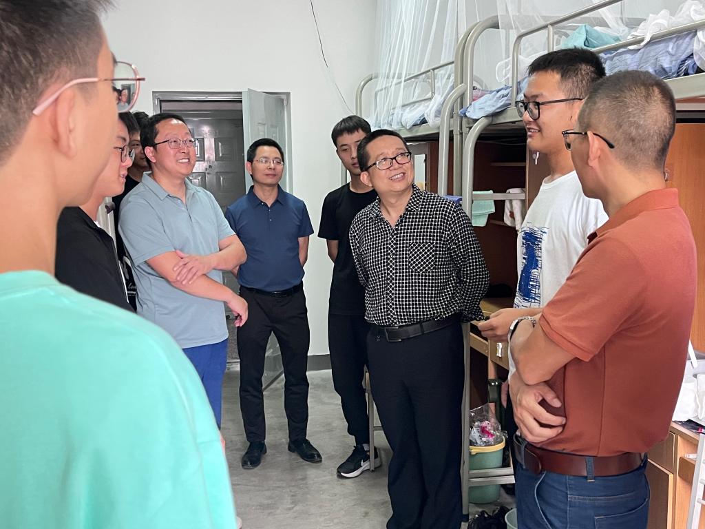 在走访研究生新生宿舍时,老师们十分关心新生的学习情况,详细询问他们的本科院校专业等,几位院领导对不同学科专业的学生均给予了有针对性的科研学习建议,鼓励同学们要学会利用学院平台,做好研究生学习规划,加强科研攻关,争取早出成果多出成果,以积极的心态迎接研究生生活。