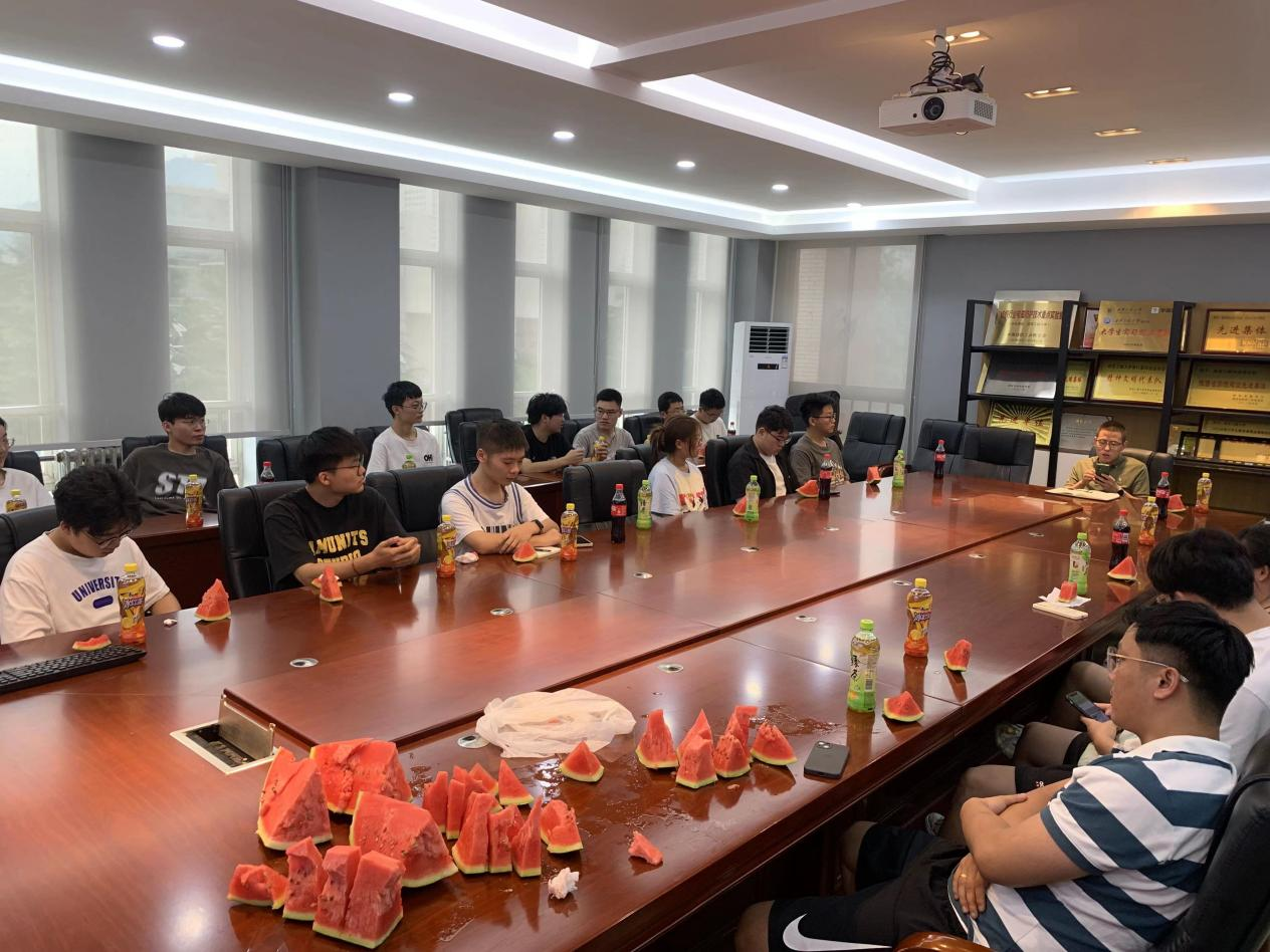 会上,文毅与同学们亲切交谈,详细了解大家近期在校生活科研学习情况,鼓励本科同学们认真做好复习规划,统筹好时间安排,积极备战考研、考编。鼓励研究生做好科研,早日取得实验进展,注意劳逸结合,并叮嘱同学们做好防暑降温工作,遇到恶劣天气要及时避险。文毅表示:同学们选择在暑期留校学习,很不容易,学院将尽全力为大家创造良好学习环境,也希望同学们遇到困难和问题及时向学院和辅导员老师反映。会上,文毅还代表学院为同学们送上西瓜、凉茶等慰问品,为同学们送去夏日清凉。