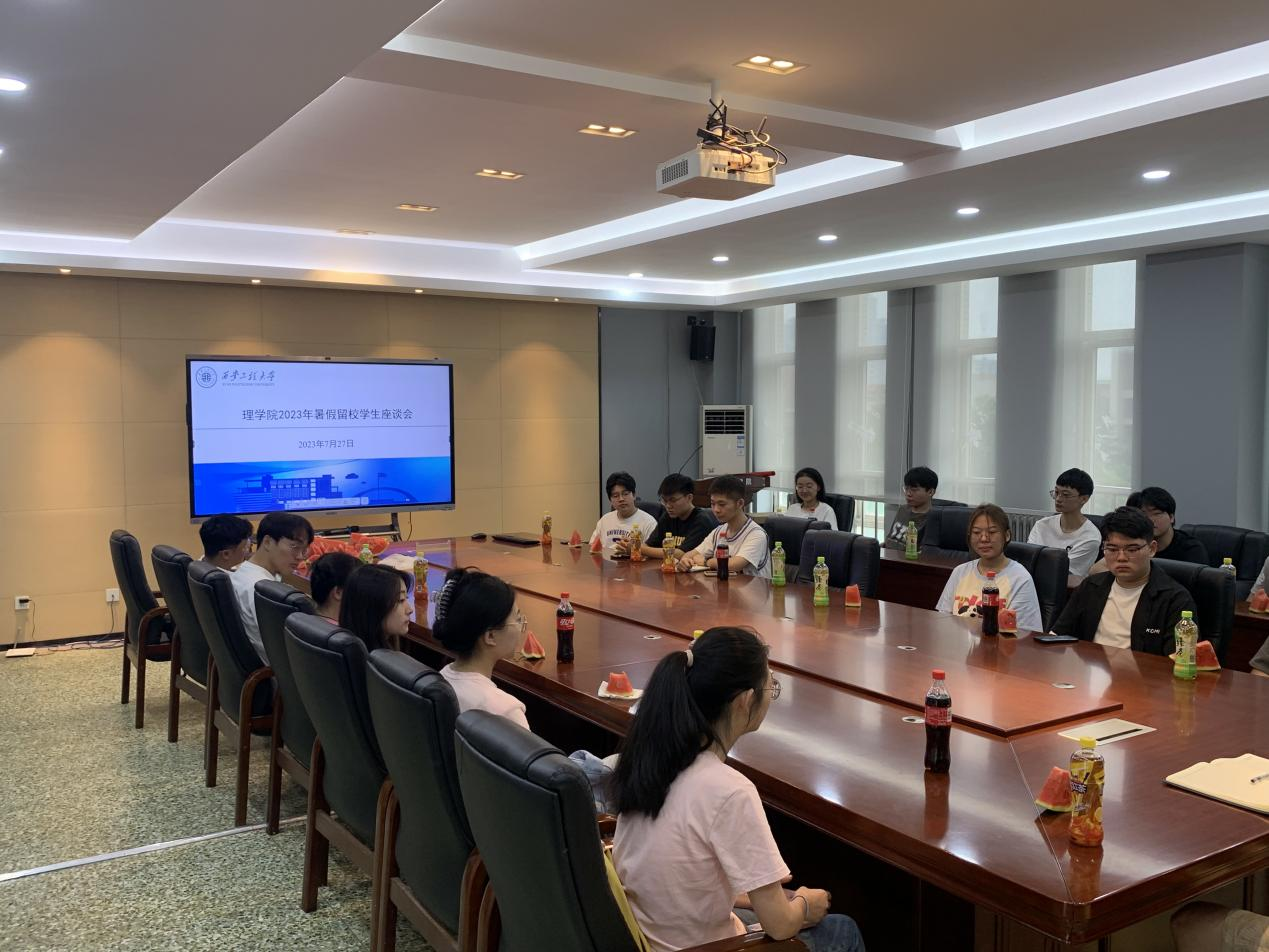 进一步做好暑期留校学生教育管理服务工作,7月27日上午,院党委副书记文毅在临潼校区物理楼四楼会议室主持召开2023年暑期留校学生座谈会。暑期留校的学生骨干和研究生、本科生代表20余人参加了座谈会。