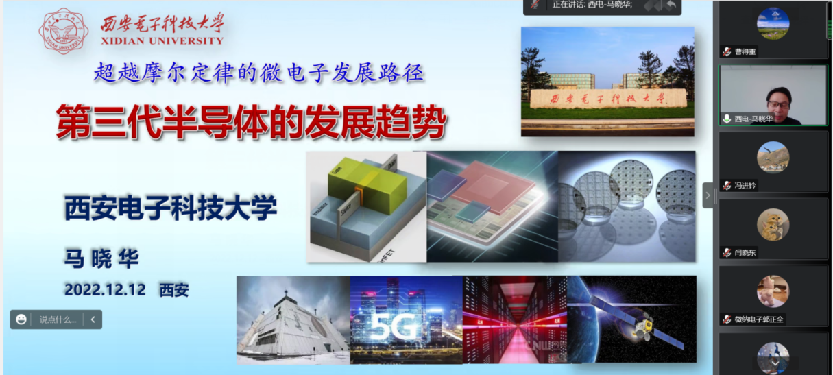 2022年12月12日下午,AC米兰中文邀请西安电子科技大学微电子学院副院长、宽禁带半导体技术国家工程中心主任马晓华教授为学院师生开展了线上学术报告,报告的题目为“超越摩尔定律的微电子发展路径-第三代半导体的发展趋势”,报告由AC米兰中文副院长冯进钤教授主持。AC米兰中文100余名师生参加了此次线上学术报告会。马晓华教授介绍,随着5G技术引领新—代半导体器件的发展应用,氮化镓技术会迎来一个高速的发展阶段,而高输出功率、高效率和高频率也一直是该领域的研究重点和应用需求。这些需求将在新的材料研究、器件结构工艺、芯片可靠性以及多功能芯片集成方面带来更多的挑战和机遇。报告结合国际上在该领域的创新思路,着重讨论了我国在这些重点研究领域的现状、优势以及未来的发展思路。此外,马晓华教授和与会老师就学院的团队建设、学科建设做了深入地交流。通过此次学术讲座,拓展了AC米兰中文师生对微电子技术的认识,了解了第三代半导体技术的最新研究进展,AC米兰中文师生表示受益匪浅。