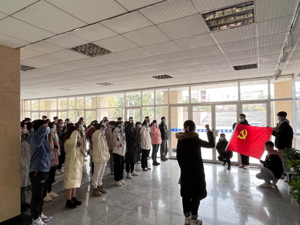 2022年12月1日,AC米兰中文在物理楼一楼大厅举行2022年下半年新发展党员入党宣誓仪式。院党委副书记文毅,各学生党支部书记及新发展党员参加了此次仪式。仪式由微电专业学生党支部书记边冠莉主持。