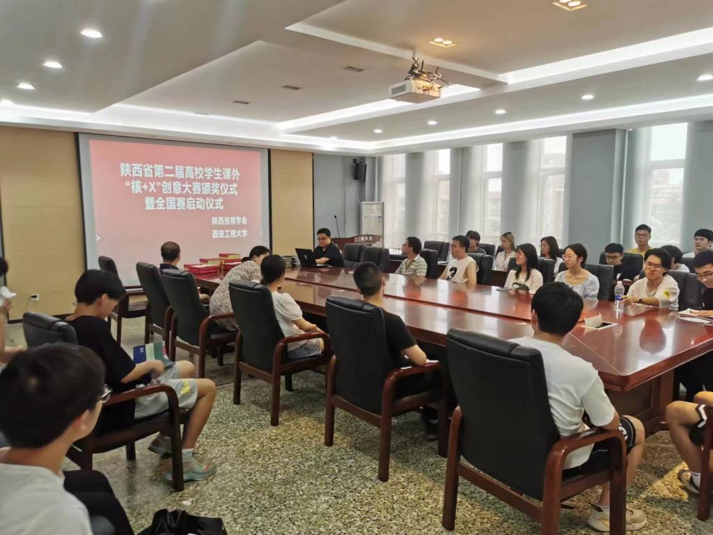 6月22日下午13点, 陕西省核+X大赛颁奖暨国赛启动仪式在AC米兰中文楼430会议室举行,物理学科教师、获奖团队学生代表参加了颁奖仪式,会议由原林老师主持。