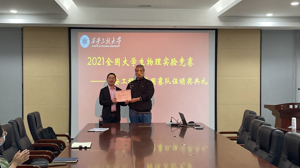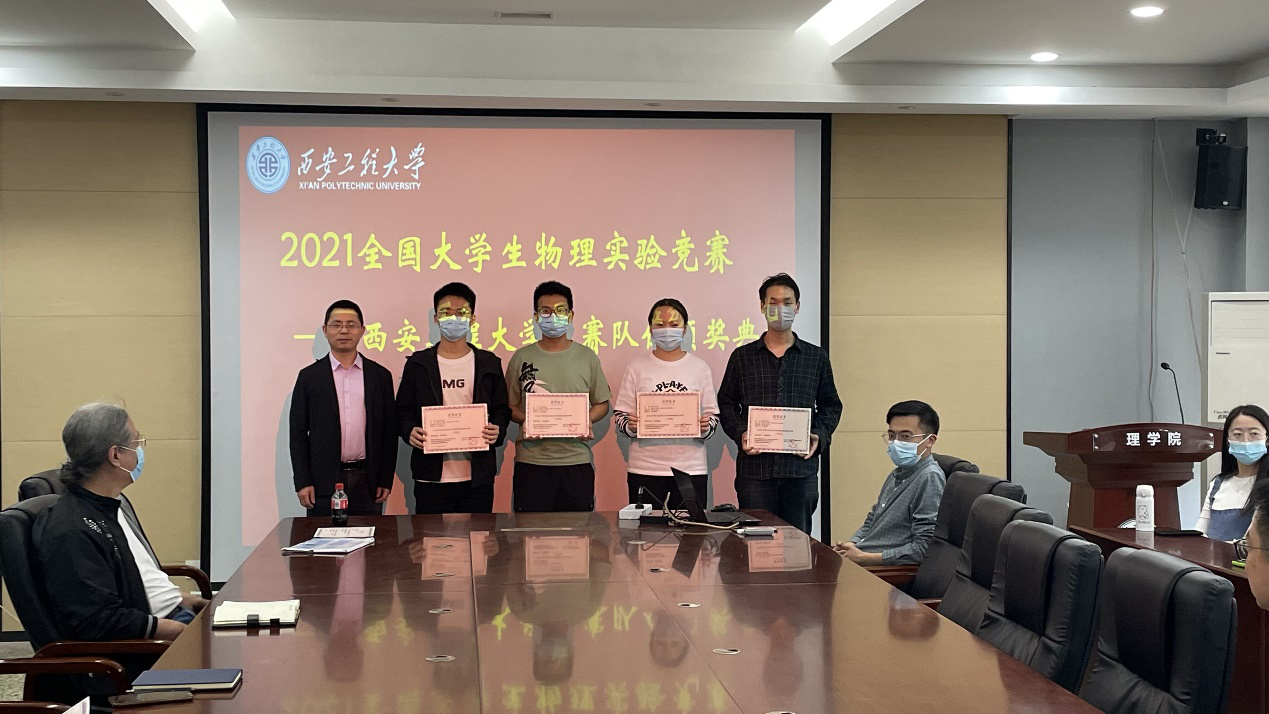 在会上,首先成鹏飞对2021年获得全国大学生物理实验竞赛的获奖师生进行颁奖。随后,成鹏飞做了2022年大学物理实验竞赛赛前动员,他指出全国大学生物理实验竞赛是教育部高教司批准的大学生国家级物理学科类实验竞赛,该赛事能够激发大学生对物理学和物理实验的兴趣,提高大学生的创新意识、知识综合运用能力和实践能力,成鹏飞强调为更好指导学生竞赛,达到以赛促学、以赛促教的目的,学院依托陕西省物理实验教学中心,以物理实验教学中心主任刘汉臣教授为首组建了一支优秀的教师指导小组,通过“比赛赛前培训、集中指导、经验交流、注重改革”打造了一套完整的组织形式,通过专人负责、团队协作,集体指导与个人指导相结合,结合三全育人导师团和本科生导师制,进一步激发了我校大学生对大学物理和物理实验课程的学习兴趣和学习潜能,培养了我校学生的创新精神和实践能力,提升了我校学生的团队协作意识和综合素质,深化了我校的物理实验教学改革,提高了本校物理实验教学质量和高素质创新性人才培养质量。2021年我们取得了2个全国三等奖和3个全国优秀奖的好成绩,希望2022年参赛的学生团队和老师能够更加努力,再接再厉,更上一个新台阶。