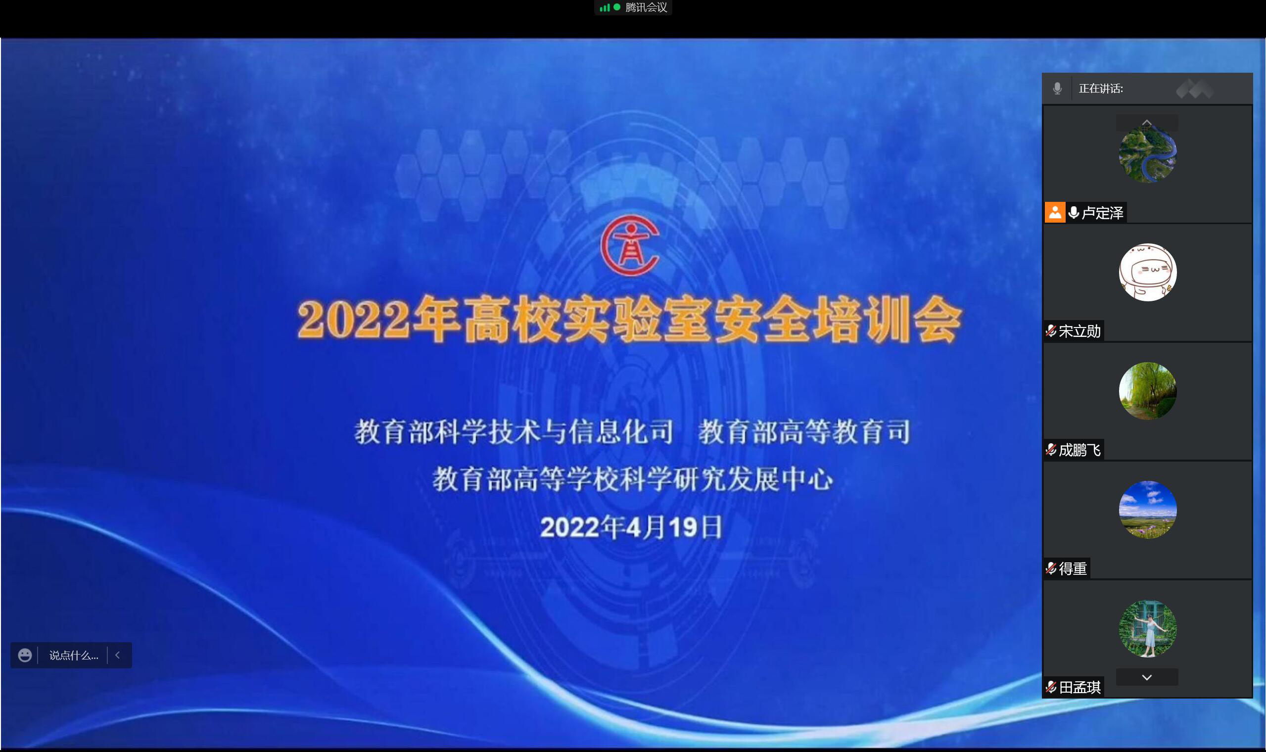 为落实全国高等学校实验室安全工作会议精神和《教育部办公厅关于组织开展2022年高等学校实验室安全检查工作的通知》,确保我院实验室常态化疫情防控安全运行,保障广大师生人身安全和学院稳定,4月19日上午,AC米兰中文组织我院相关人员通过腾讯会议参加教育部2022年高校实验室安全培训线上会议,学院副院长成鹏飞教授、物理实验中心主任刘汉臣教授等三十余人参加了本次培训会。