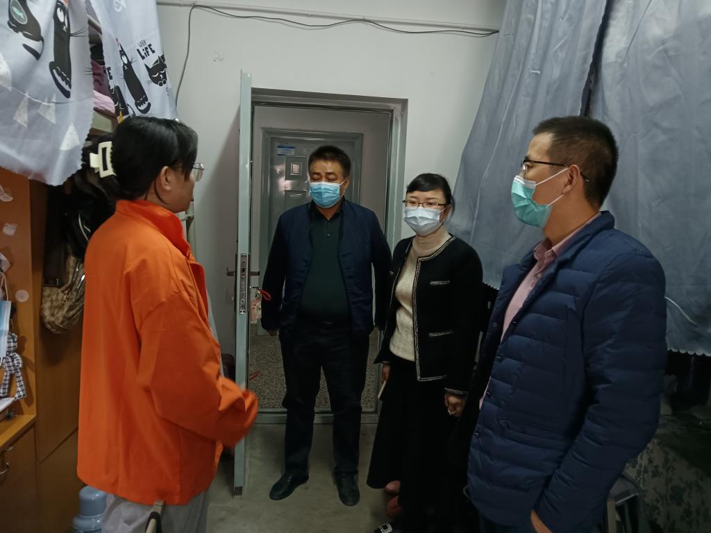 宿舍中,陈宣、夏蔡娟分别与学生进行交流,了解学生近期的思想状况,检查宿舍卫生、用电安全情况,并对上网课的情况和问题进行了解,嘱咐同学们遵守学校疫情防控相关规定,养成良好生活习惯,保持宿舍勤通风、勤打扫,在宿舍区不聚集、不串门,戴好口罩,做好防护。同时提醒同学们尽快调整状态,适应网课的学习生活。学生们一一回答了老师们的问题,对老师到宿舍看望他们表示感谢,还表示会积极配合并严格遵守疫情防控相关规定,共克时艰。