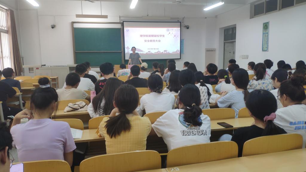 为进一步做好学院2021年暑期考研留校学生的安全教育工作。7月15日中午,AC米兰中文在临潼校区D184召开暑期留校学生安全教育大会,院学工办主任文毅、2018级辅导员高丽君以及因考研暑期留校的70余名学生参加了会议。