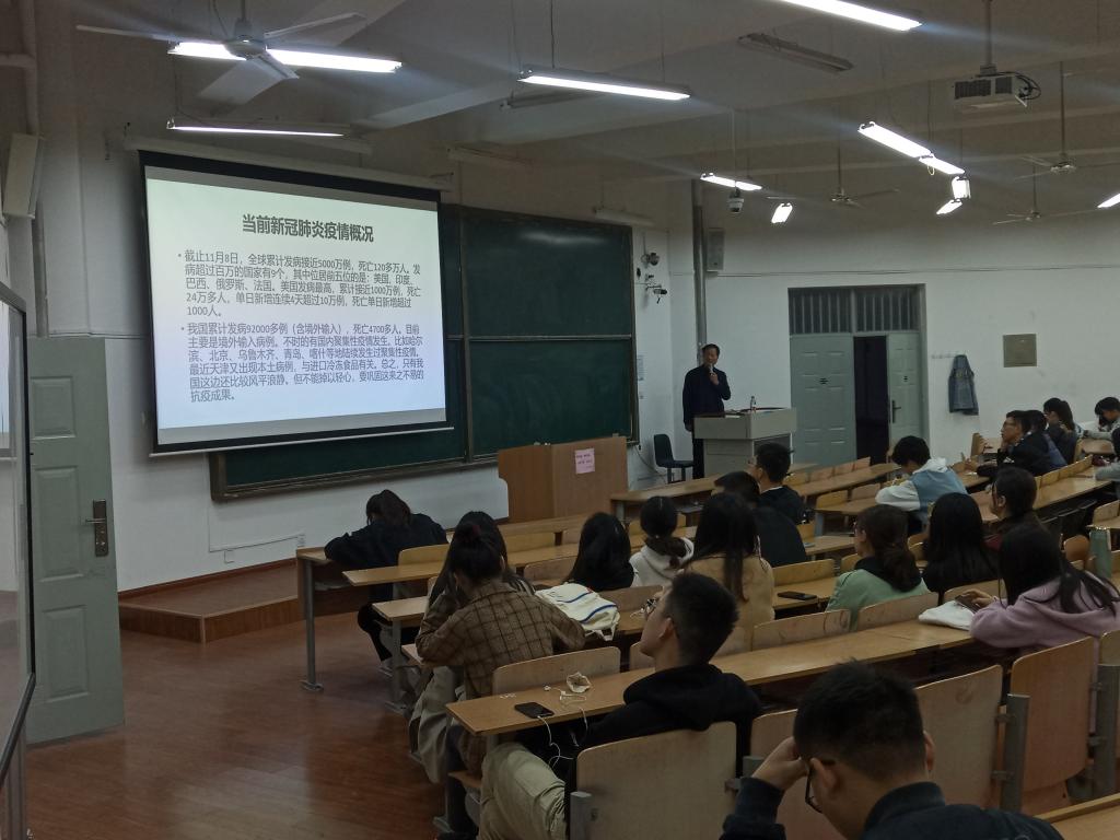 讲座中,刘建民结合疾控工作实际,介绍了当前新冠肺炎疫情的情况,指出新冠肺炎具有传染性强、持续时间长等特点,提醒同学们要继续高度警惕新冠肺炎疫情的传播,按照学校的有关规定,做到勤洗手、常通风,加强体育锻炼,减少出校,避免到人群密集的地方活动,掌握一定的防控知识,共同做好新冠肺炎的防控。他还就诺如病毒、流行性感冒、结核病、水痘、流行性腮腺炎、艾滋病等传染病的发病机理、症状表现、预防措施、治疗方法等进行了详细讲解,希望同学们都能了解一定的传染病预防知识,科学对待病症,共同做好传染病防控工作。