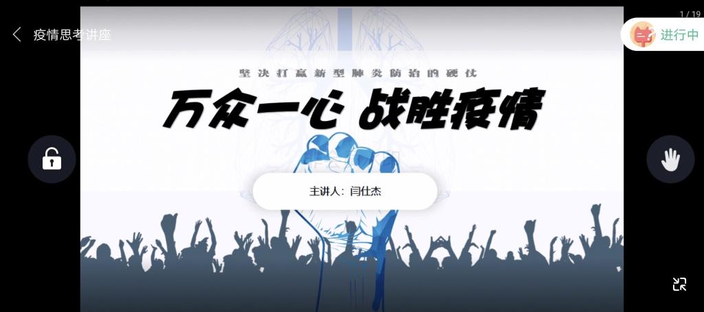 讲座最后,闫仕杰教导同学们要不信谣、不传谣,要模范遵守法律法规,遵守地方政府和学校疫情防控相关要求,为抗“疫”积极贡献;他激励同学们坚定信心,共同迎接战“疫”胜利的消息!这信心来自国家的强大、民族的坚韧性以及人民的凝聚力。