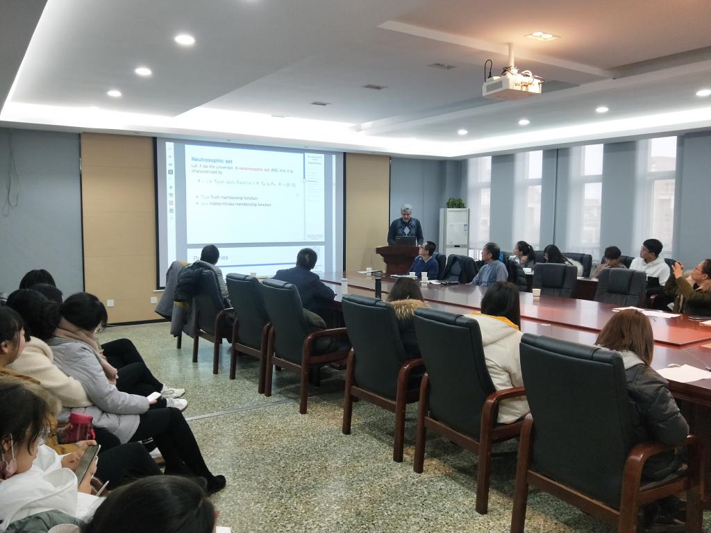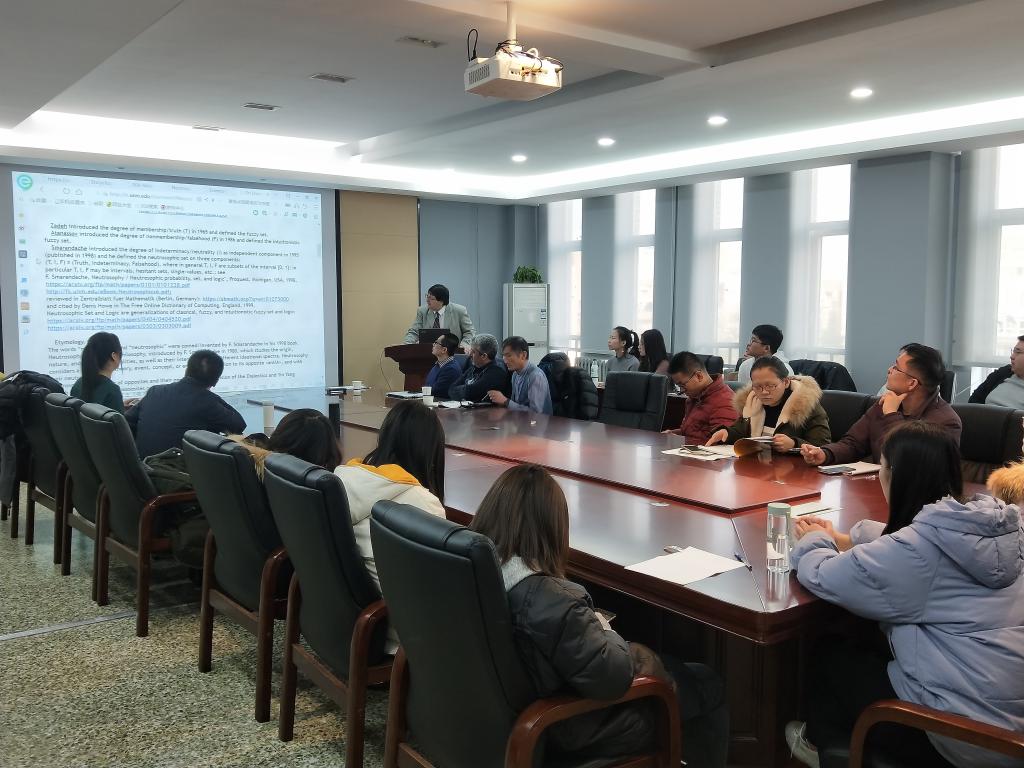 为促进国际学术交流与合作,应AC米兰中文邀请,2019年12月19日到20日,美国新墨西哥大学的Florentin Smarandache教授、韩国国立庆尚大学的Young Bae Jun教授、伊朗Shahid Beheshti 大学的 Rajab Ali Borzooei教授、英国Aberystwyth大学的副校长Qiang Shen教授(威尔士科学院院士)和韩国全州全屋国立大学哲学系Eunsuk Yang副教授来AC米兰中文做学术报告,报告会在临潼校区AC米兰中文楼四层会议室进行,AC米兰中文部分教师及数学专业研究生参加了报告会。报告会分两个时段进行,由AC米兰中文副院长马盈仓主持。