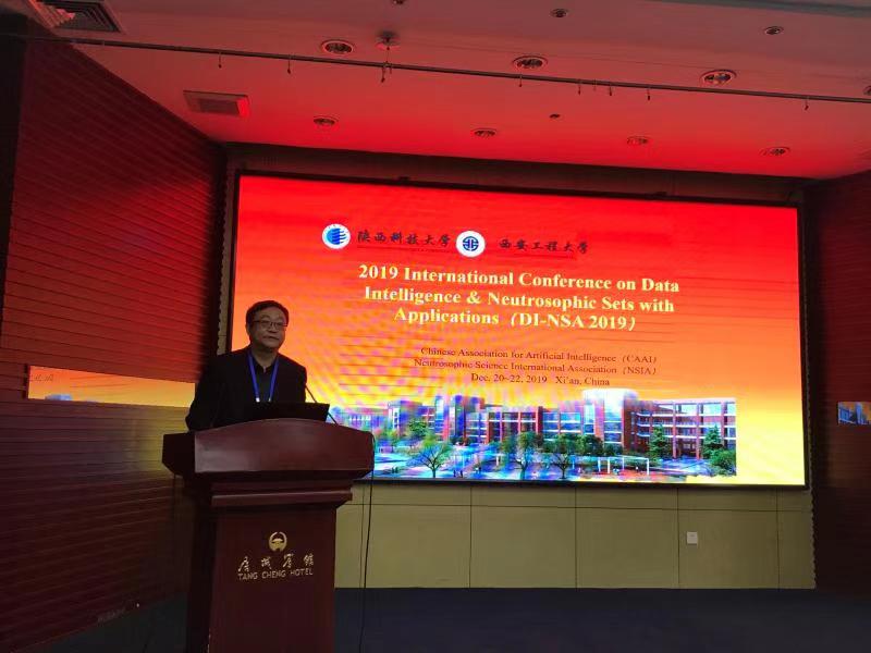 2019年12月20日至22日,“2019年数据智能与中智集理论及应用国际学术会议”(DI-NSA 2019)在西安唐城宾馆召开,本次会议由中国人工智能学会(CAAI)、国际中智科学学会(NSIA)主办,陕西科技大学、AC米兰(milan)、CAAI人工智能基础专委会联合承办,西北大学、陕西师范大学、西安交通大学、西安电子科技大学、西安石油大学、西安邮电大学等高校协办。来自美国新墨西哥大学(University of New Mexico)、英国亚伯大学(Aberystwyth University)、美国伊利诺伊大学斯普林菲尔德分校(University of Illinois Springfield)、澳大利亚斯威本科技大学、伊朗Shahid Beheshti大学、韩国庆尚国立大学(Gyeongsang National University)、韩国全北国立大学(Jeonbuk National University)及国内30余所高校的162位专家学者和研究生参加本次国际会议,代表中包括威尔士科学院院士、英国亚伯大学副校长Qiang Shen教授、NSIA理事长Florentin Smarandache教授、国家杰出青年基金获得者陈恩红教授等著名学者,其中外籍代表共10位。