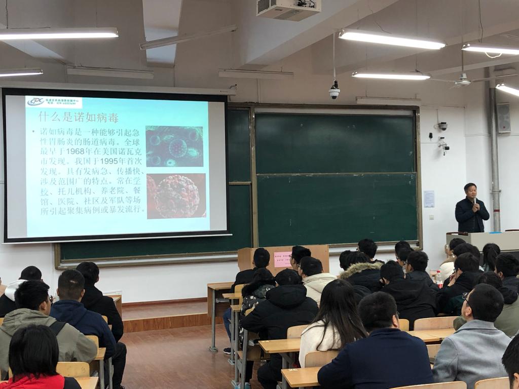 讲座上,刘建民从冬季常见的诺如病毒、水痘、流感、流行性腮腺炎等传染病的症状、传染途径、预防、治疗等相关知识,通过发生在高校大量具体真实的案例,介绍了传染病处置中的控制传染源、切断传染途径、保护易感人群三个阶段工作和关于传染病的预防措施。告诉同学们要牢固树立“个人是健康的第一责任人”的观念,希望同学们加强体育锻炼、保持宿舍良好卫生状态、经常通风换气,养成良好的生活方式。