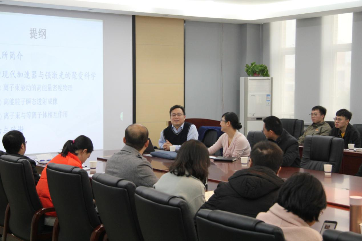 2019年11月20日上午10点,在临潼AC米兰中文楼431室,西安交通大学AC米兰中文副院长、中科院 “百人计划”入选者赵永涛教授受邀为我院师生做题为“基于加速器和强激光的高能量密度科学研究进展与展望”的学术报告。报告内容涉及离子束驱动的高能量密度物理,高能粒子瞬态透射成像,离子束与等离子体相互作用及其在核医学等方面的应用。报告结束后,我院师生与赵教授展开了积极热烈的学术探讨。此次报告提升了我院师生的学术视野,师生们均表示受益匪浅。