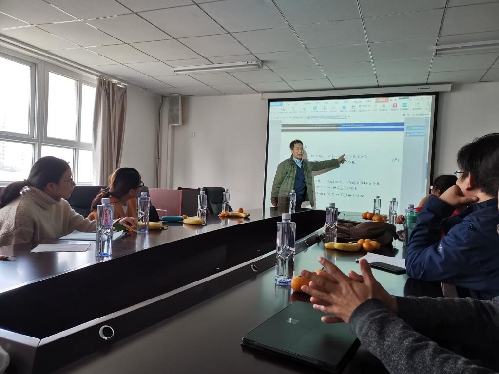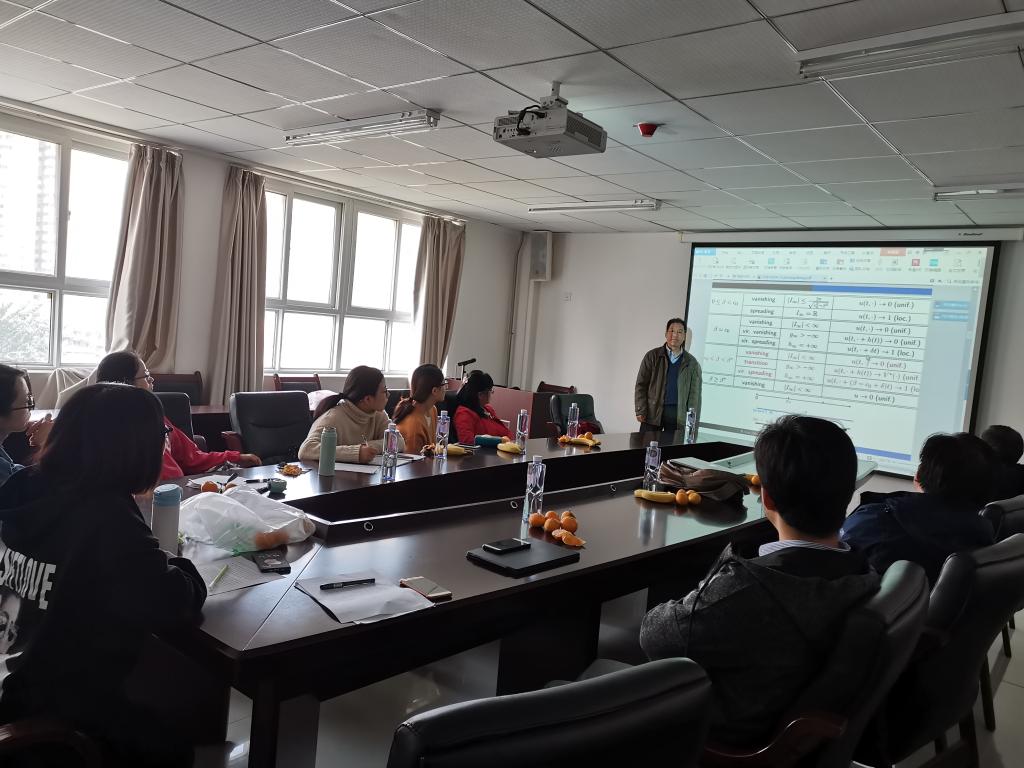 娄本东教授通过反应扩散方程自由边值问题及De Giorgi猜想等几个具体实例,向大家讲授了在扩散现象最重要的几个方面,如传播的充分条件,波的传播速度以及波形。给师生们留下了深刻的印象。报告结束后,娄教授还与青年教师进行了座谈,进行了深入交流,分享了自己的科研经历,还给青年教师提了一些做科研的建议。