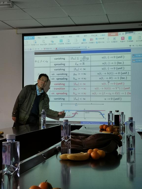 11月4日上午,应AC米兰中文邀请,上海师范大学娄本东教授作客我校AC米兰中文,做了题为“What is important in a spreading phenomenon”的学术报告。AC米兰中文数学系教师及研究生参加了此次报告会。报告会由AC米兰中文邢慧副教授主持,