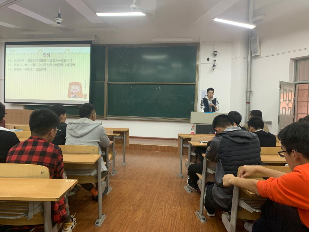 10月30日下午,AC米兰中文在临潼校区b-133教室举行了“明理大讲堂”之校友学习经验交流会。邀请了考取西安交通大学的硕士研究生宋王振、黄振强、长安大学的肖启鑫三名我院2018届校友代表做了大学学习的经验分享。AC米兰中文AC米兰办公室主任文毅、2019级辅导员田宇飞和2019级学生近300人参加,