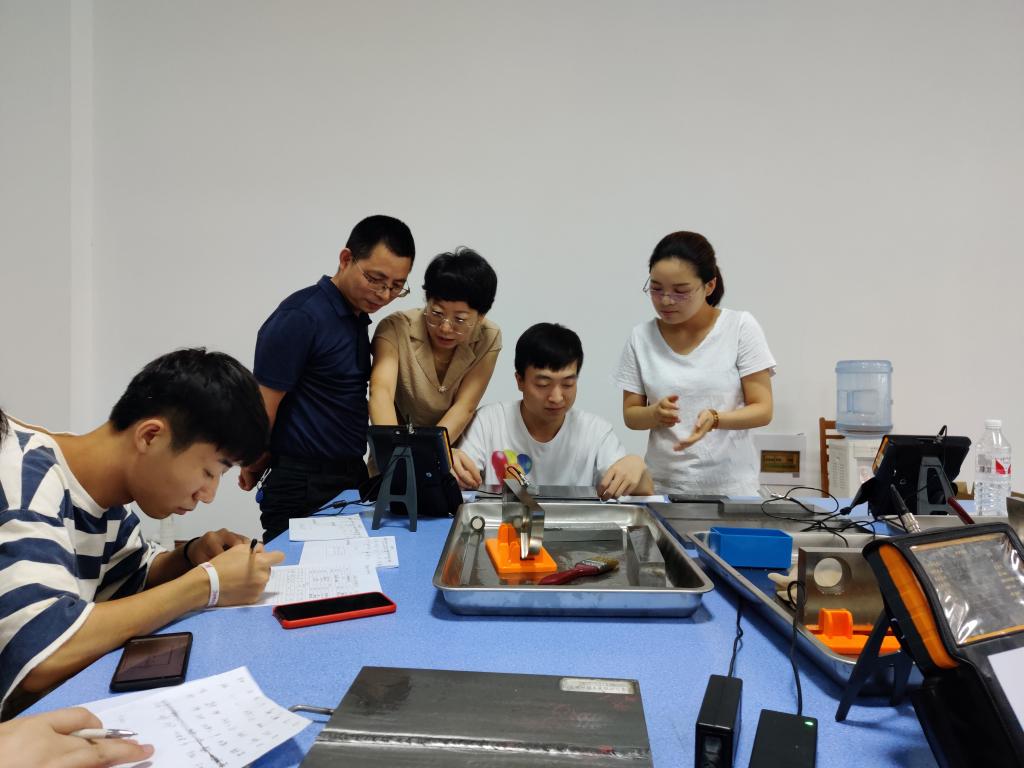 7月8日,挂牌仪式在山东瑞祥模具有限公司会议室隆重举行。山东瑞祥模具有限公司董事长、总经理魏忠瑞,副总经理万海涛、马建民,工会主席张海亭,办公室主任韩秀军出席了挂牌仪式。魏忠瑞总经理对我院老师的到来表示热烈的欢迎,提出希望进一步加强校企合作,培养适应新时代社会需要的无损检测专业人才的良好愿景。万海涛从公司筹备、邀请专家授课、技术骨干指导、外出研学、学生食宿安排等方面介绍了应用物理学专业学生来公司实习的整体情况。成鹏飞在讲话中表达了对公司在勇挑人才培养这一社会责任的敬意,对公司多年来在专业实践基地建设方面的帮助表示衷心的感谢,并提出了公司与学校进行深度产学研融合的新构想。魏忠瑞和成鹏飞一起为社会实践基地揭牌。