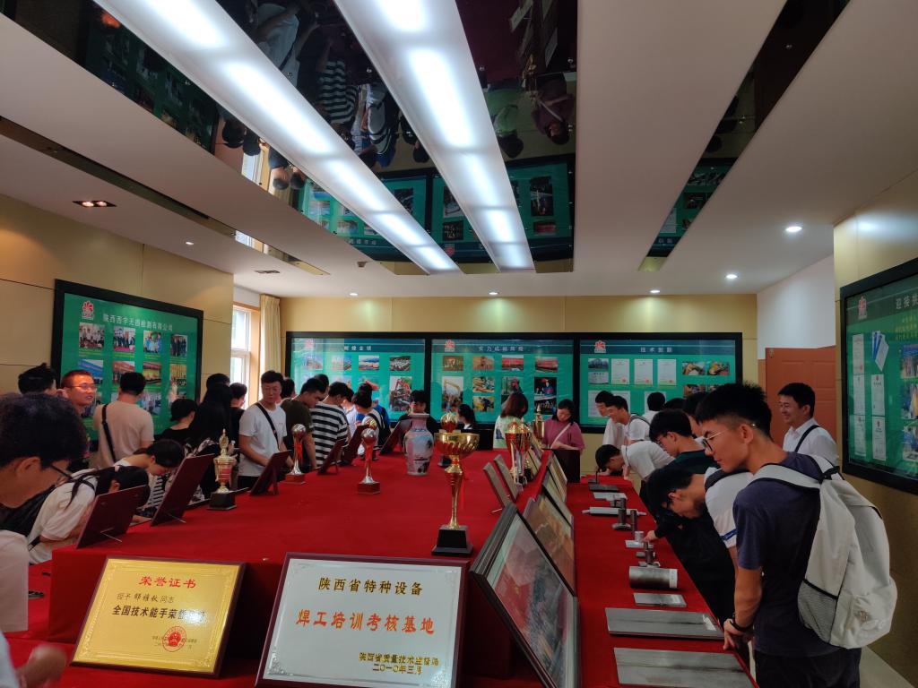 欢迎仪式上,陕西西宇检测有限公司总经理袁黎明、副总经理(总工程师)杨波和副总经理赵刚对我院师生的来访表示热烈欢迎。随后在杨波、赵刚的带领下,我院师生参观该公司的超声检测室、X射线检测室、焊接室、胶片档案室等,两位副总分别给师生们介绍了超声检测及超声检测相控阵、TOFD新方法在石油管材及特种设备检测中的应用,以及X射线透照、拍片、评片全过程,强调熟悉材料成型工程、焊接工艺等对无损检测的重要性,并就同学们现场提出的问题进行了耐心细致的回答。