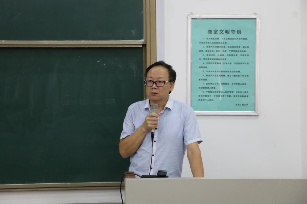 教师代表成鹏飞在发言中对新同学的到来表示祝贺,告诉同学们要在大学的舞台上展示自我,建议同学们要树立正确的人生观和价值观,学会管理自我,尽早规划人生,珍惜时间、努力学习。并祝愿同学们度过一个充实的大学生活。