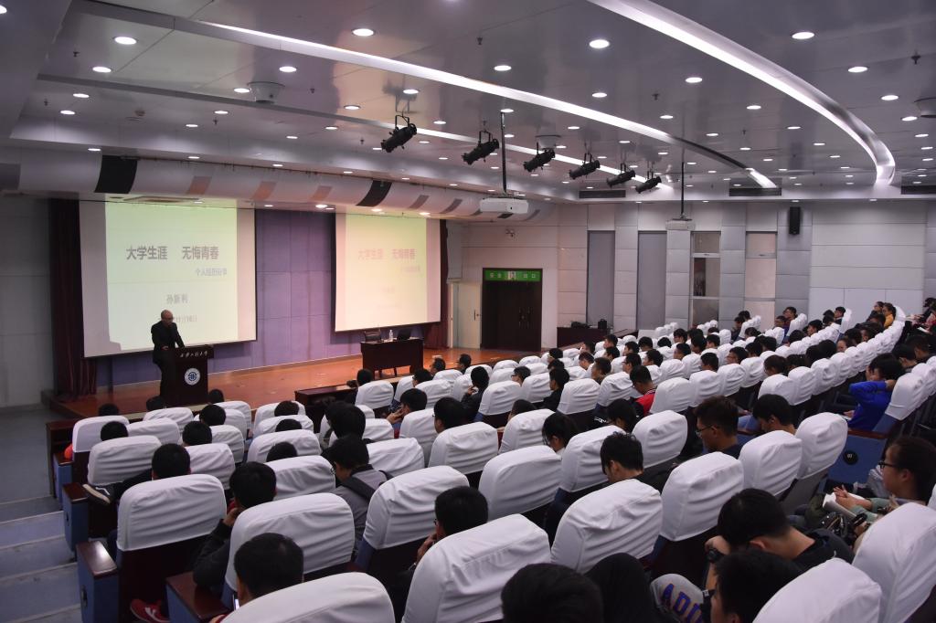 会上,孙新利从自己在我校的求学经历谈起,分享了自己的学业生涯过程,告诉同学们要以积极向上的态度对待学业,珍视大学生活;对应用物理学物理和微电子科学与技术专业的设置谈了自己的独到见解和广阔发展前景,告诉同学们要重视所学的专业知识;对自己所从事过的学生干部经历做了回顾,告诉同学们要努力提高综合素养,为将来步入社会奠定坚实基础;讲述了自己的职业生涯历程,告诉同学们一要充分利用自身优势,提前做好规划。二要努力克服心浮气躁,做到顺势而为;最后,他还分享了自己这些年的几点感悟,告诉同学们要每天进步一点,确定小目标并达成,还要怀抱心怀感恩。