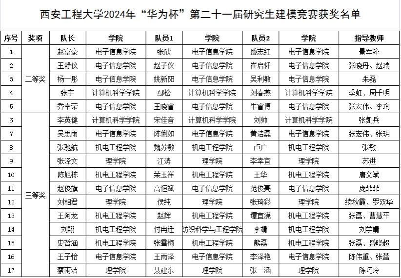 近日,中国研究生数学建模竞赛组委会公布了“华为杯”第二十一届中国研究生数学建模竞赛评审结果,我校共荣获二等奖5项、三等奖12项,获奖数量创历史最好。