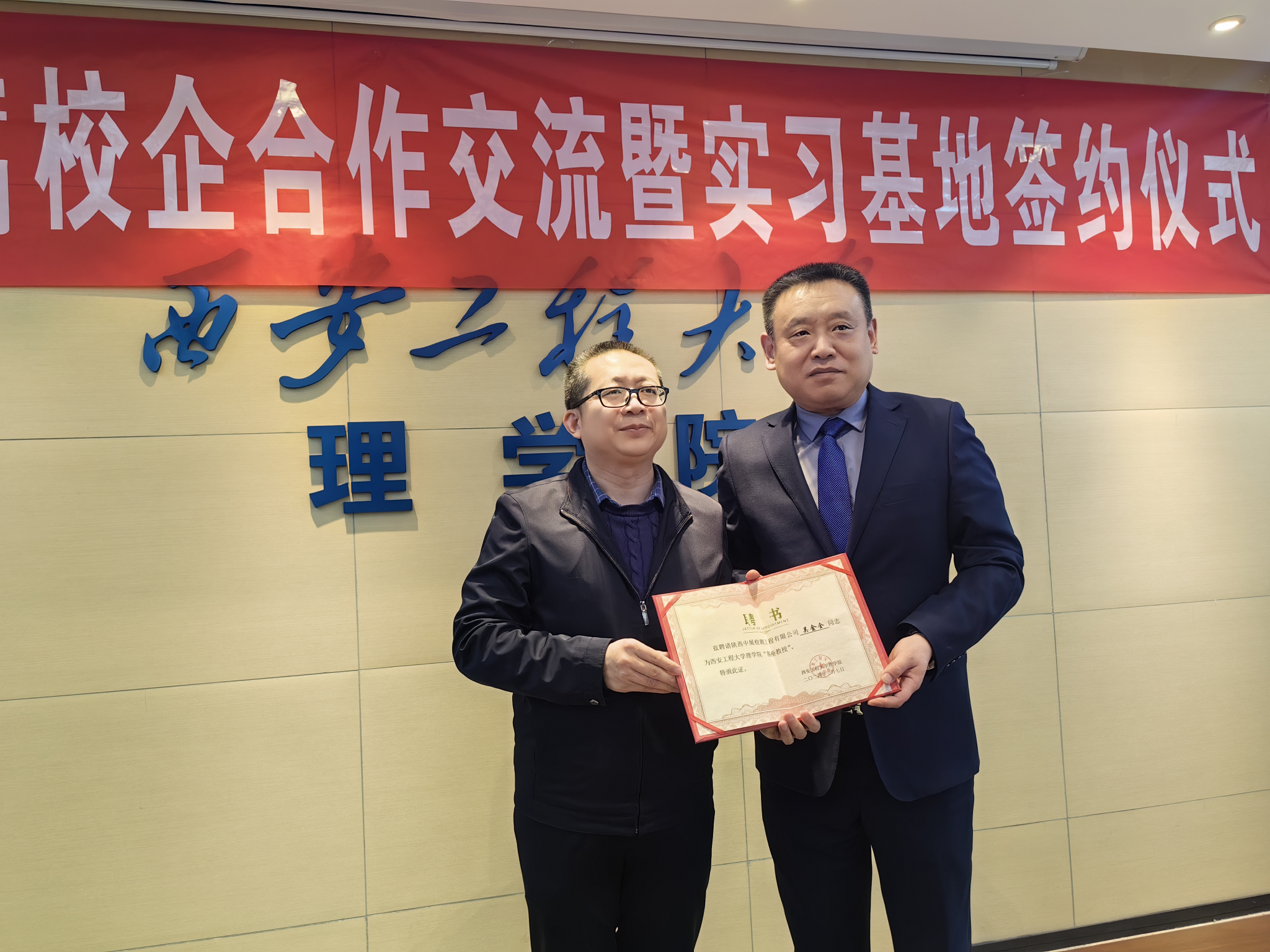 会上,还举行了校企合作签约和客座教授等聘用仪式。马盈仓和吴金全分别代表双方签订了校企合作协议,马盈仓和刘玉森分别为企业相关领导颁发了聘书。