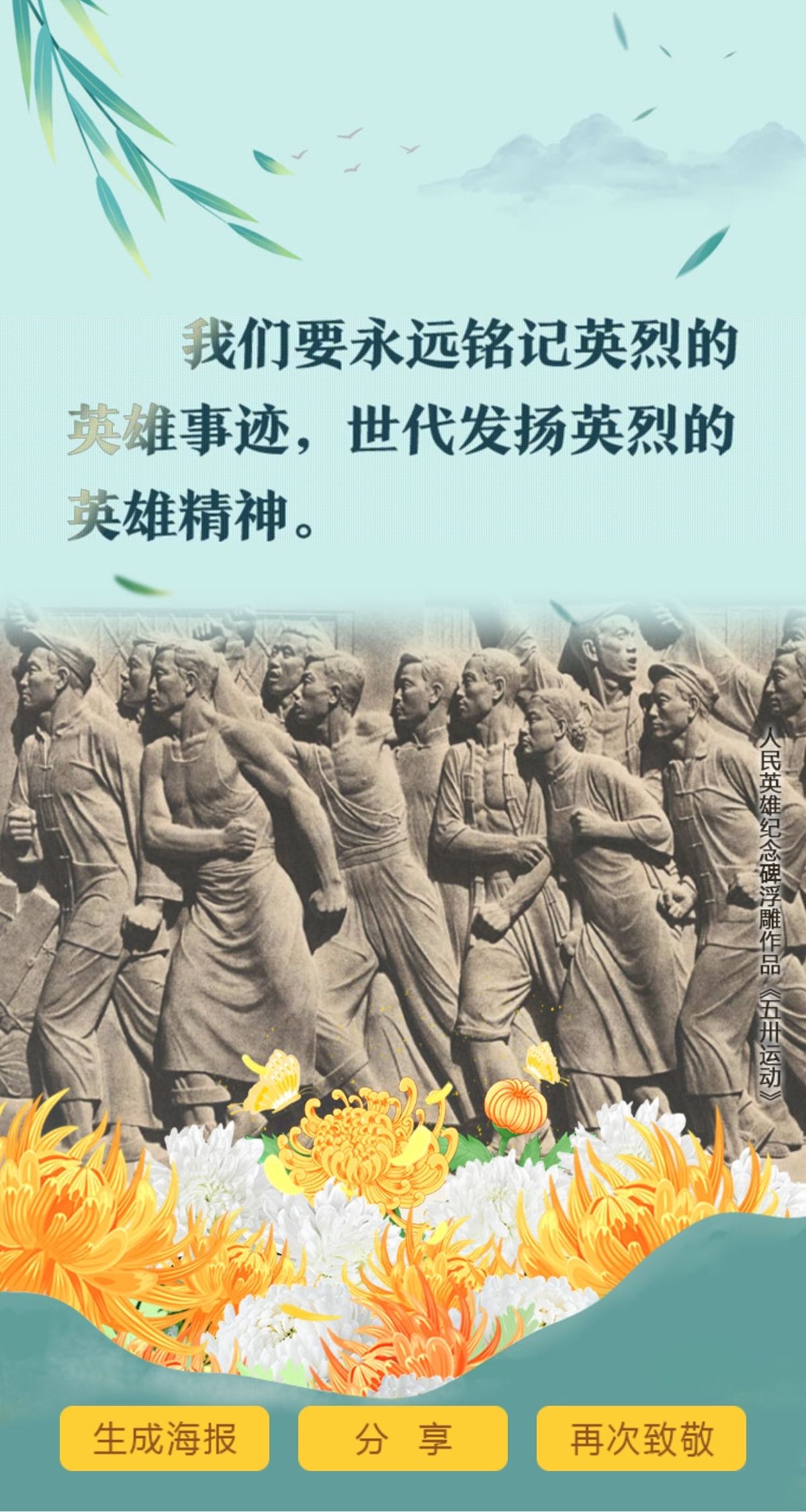 追忆峥嵘岁月,感悟信仰力量。4月4日至6日,学院组织全体学生开展网上祭英烈活动。通过认真观看视频,一张张照片、一件件雕塑、一个个故事,生动再现了革命先烈为民族独立和人民英雄解放事业英勇奋斗的光辉历程。同学们向革命烈士与人民英雄纪念碑在线敬献花篮,用简单而真挚的方式,表达对先烈的深切缅怀和无尽哀思。
