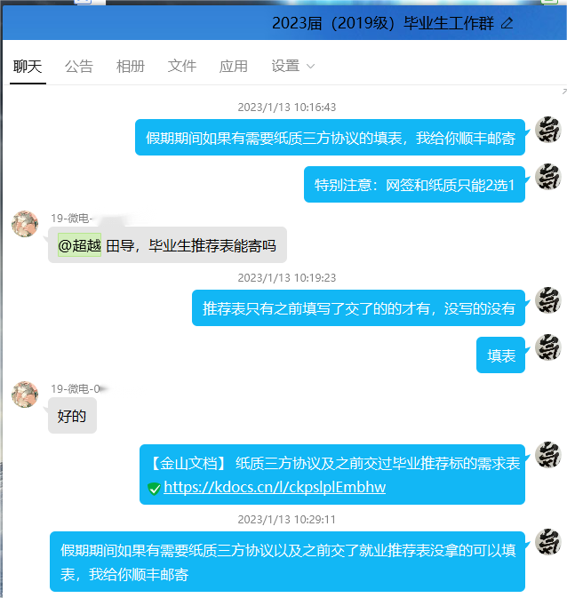 就业工作重实效。一是分类指导,精准帮扶。开展毕业生就业意向问卷调查,根据调查结果进行分类指导,将就业信息“点对点”推送给毕业生,同时根据招聘单位的用人需求,将毕业生简历精准推送到招聘单位;二是密切沟通,用心帮扶。加强与未就业毕业生沟通交流,通过微信、QQ、电话等形式与学生沟通,了解毕业生求职过程中遇到的困难与需求,并根据学生实际及时给予指导;三是助力就业,温暖帮扶。为做好毕业生就业服务工作,安排毕业生辅导员将学生材料搬运回家,保证为2023届毕业生提供24小时在线咨询及全假期三方协议、就业推荐表邮寄服务,确保了学生三方签订及就业无材料障碍。在假期期间有学生需要进行入伍盖章,学院副书记文毅亲自带章子从临潼校区到金花校区为学生盖章,保证学生参军盖章按时完成,受到学生和家长的一致好评。