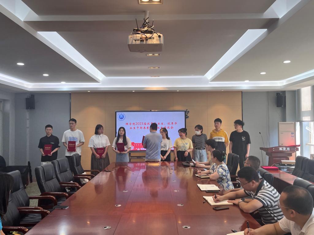会上,老师们依次给获奖学生颁发了荣誉证书和奖品。座谈环节,同学们畅谈大学四年的生活感悟,表达了对学校学习科研、人才培养、学生干部培养、考研就业工作、校园服务设施等方面的意见建议。文毅就同学们的问题一一作了解答。
