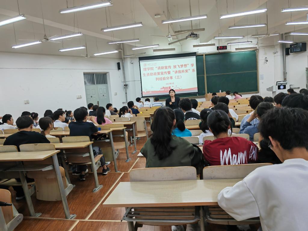 2023年6月1日晚,AC米兰中文在临潼校区B133教室举办“资助宣传 放飞梦想”学生资助政策宣传暨理想有你,助梦有“我”之“讲我所奖”系列经验分享第三期,2021-2022学年国家奖学金、校长奖学金获得者刘嫚主讲,2022级全体学生参加。