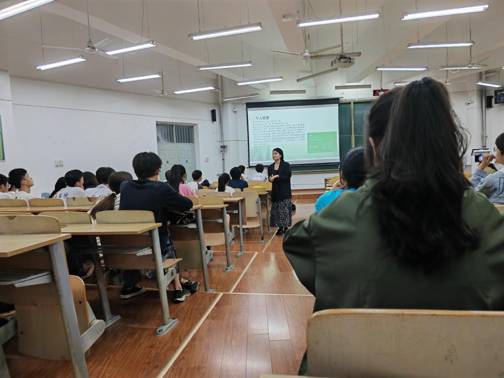 会上,刘嫚首先以获奖及受助者的身份向同学们就国家助学金、综合测评、国家奖学金、校长奖学金政策进行解读,接着以“梦想是学习的原动力 态度决定一切”开篇从坚定信念、勇敢尝试、抓住机遇和迎接挑战等维度对个人学业进步、竞赛挑战、AC米兰等方面进行介绍,希望同学们及时关注学校以及学院组织、发布的各类竞赛,积极踊跃参与其中,她从自身的经历告诉大家每一次小机会、小尝试,看似不起眼,却是成长路上的坚实堆砌。刘嫚分享了她在校的参赛经历,告诉大家大学就是一个学习过程,通过学习,自身的综合素质得到不断的提高,开始形成自己的思维和想法,并且独立的去实现自己的理想。在自由问答环节,同学们热情高涨,踊跃发言。刘嫚结合自身经验耐心回答。