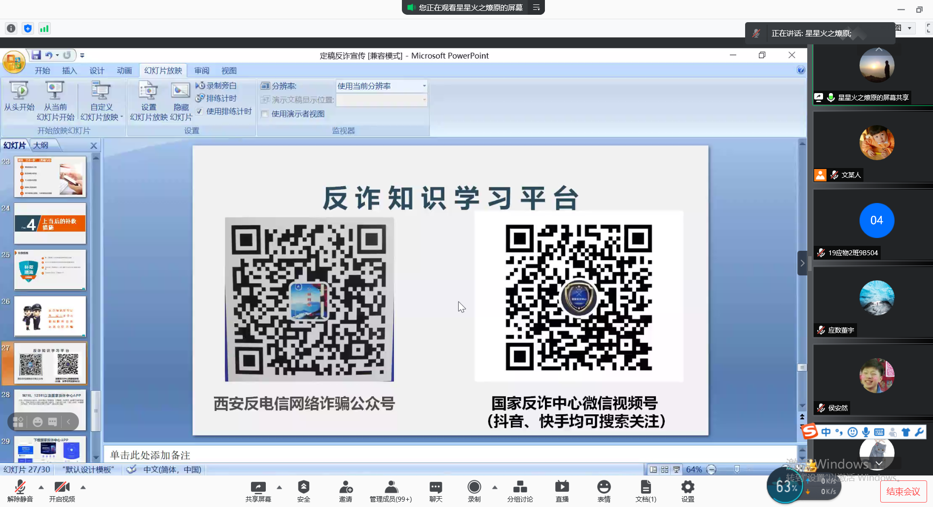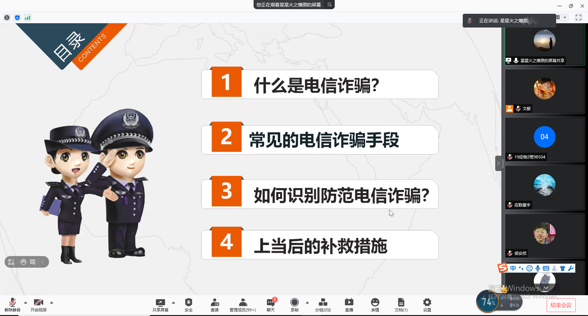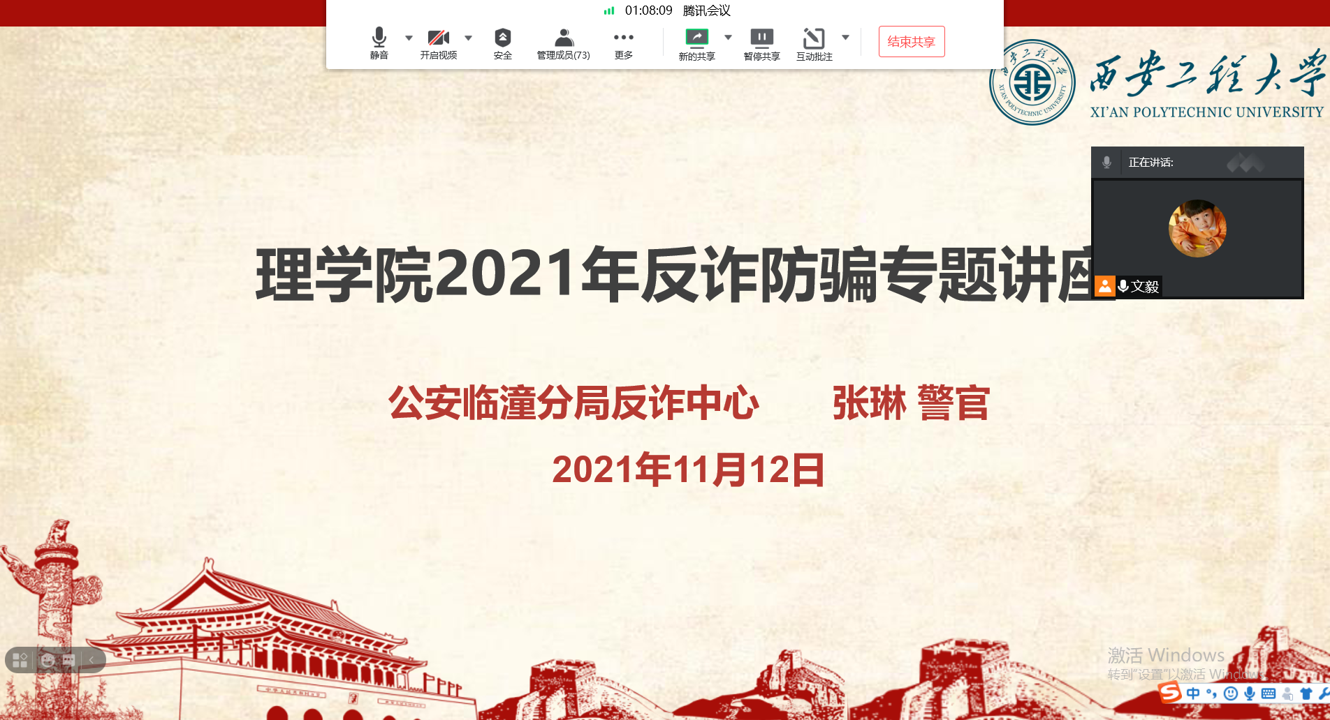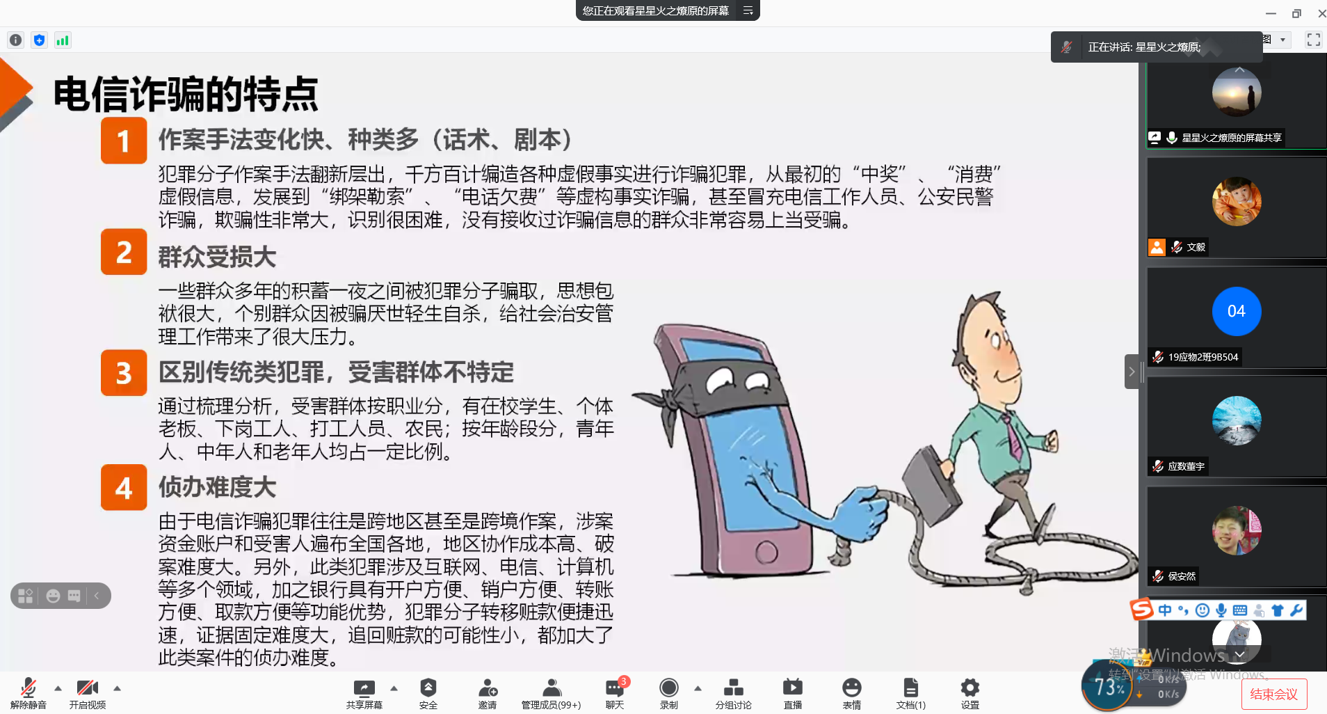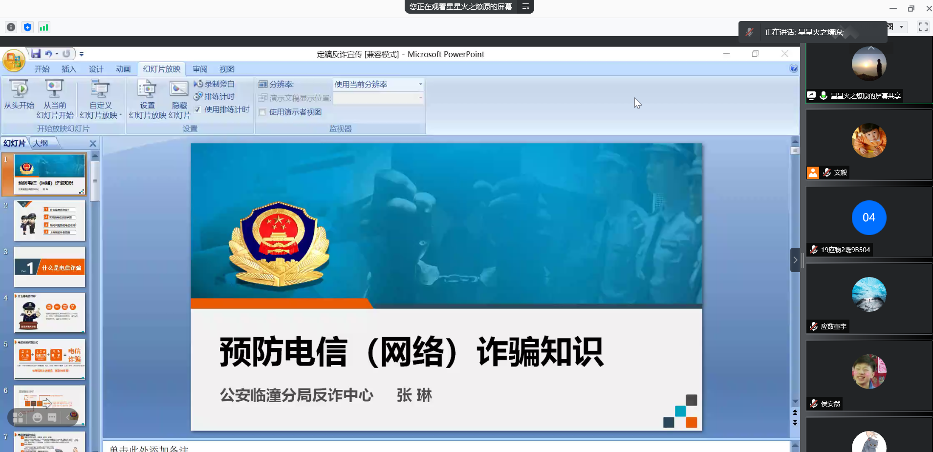 为进一步提高同学们的安全防范意识,切实保障同学们的财产安全。11月12日下午,AC米兰中文邀请公安临潼分局反诈中心张琳警官通过腾讯会议举办了“2021年反诈防骗专题讲座”。讲座由院学工办主任文毅主持,全院各宿舍舍长参加。