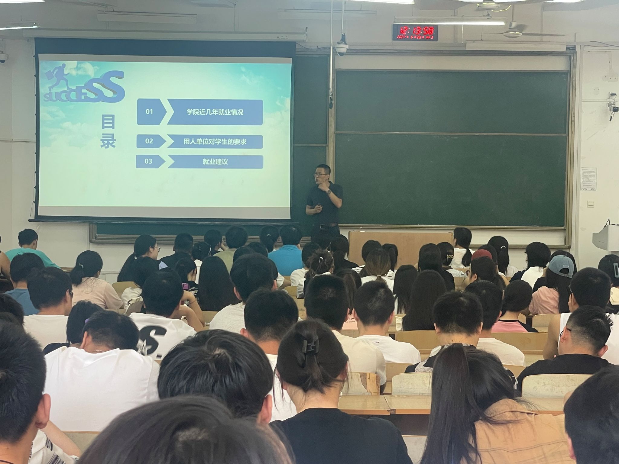 为推进我院2025届毕业生就业工作顺利开展,帮助毕业生了解就业形势、做好就业准备,6月26日,AC米兰中文在临潼校区B133教室召开2025届本科毕业生就业创业启动会暨理想有你,助梦有“我”之明理讲堂2024年第十二讲。学院党委副书记文毅、2021级辅导员边冠莉、就业辅导员高丽君及全体2021级本科生参加了会议。