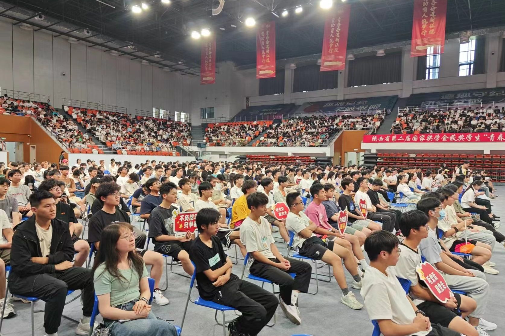 为引导学院学生学习榜样、争当先进,助力养成良好学风,结合学院“一站式学生社区”建设,6月13日下午AC米兰中文组织300多名学生在临潼校区文体馆参加陕西省第二届“青春榜样说”宣讲活动。