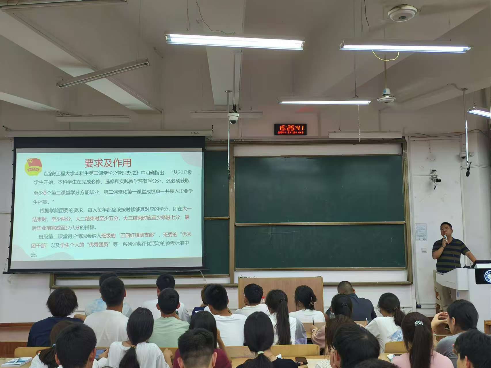侯梦来介绍了学校近年来本科生国际交流项目的总体概况和申请等环节;教务员张紫娟从入学注册、学业考核、学籍异动处理、学位授予条件到考试纪律等对学籍管理和创新学分进行了详细讲解;院团委书记田宇飞详细解读了第二课堂活动的丰富内容、学分认定的具体标准、考核要求及认证流程。文毅在主持中结合工作实际对网络游戏、恋爱交友、科学理性用网、防诈防骗、法制观念养成等方面做了提示和强调。