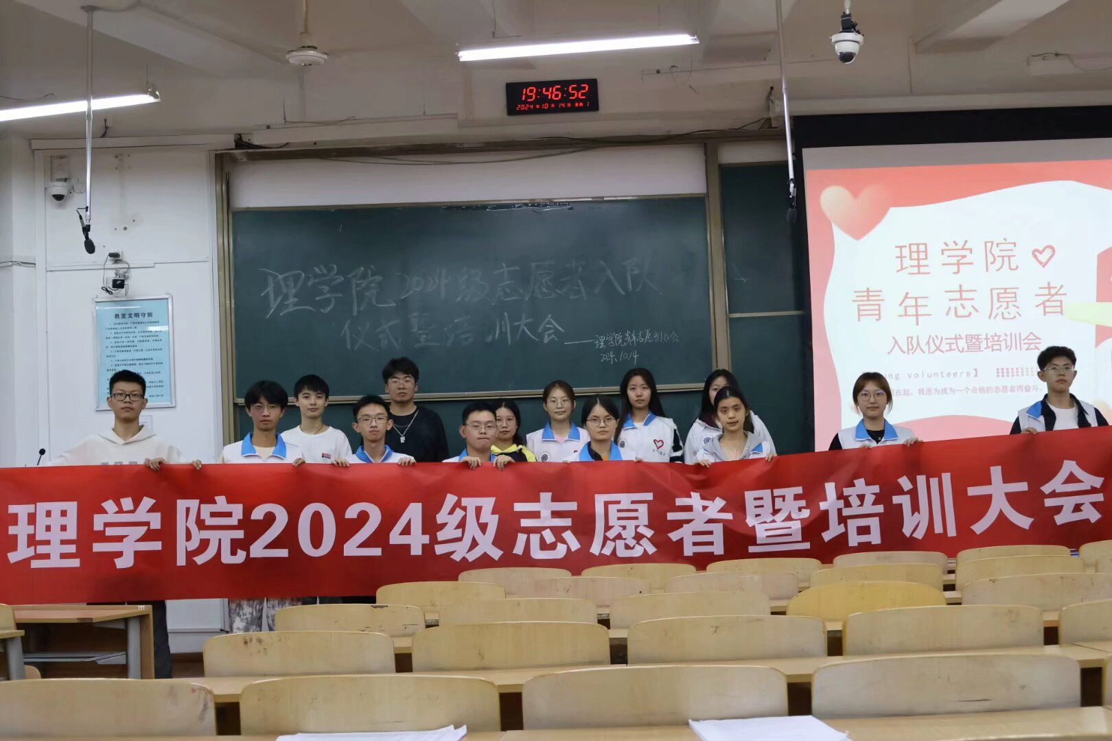 为更好帮助2024级学院新生深入了解青年志愿者的角色以及志愿活动开展的重要意义,培养同学们的志愿服务意识和能力,学院于10月20日B237教室举办了2024级志愿者入队仪式。