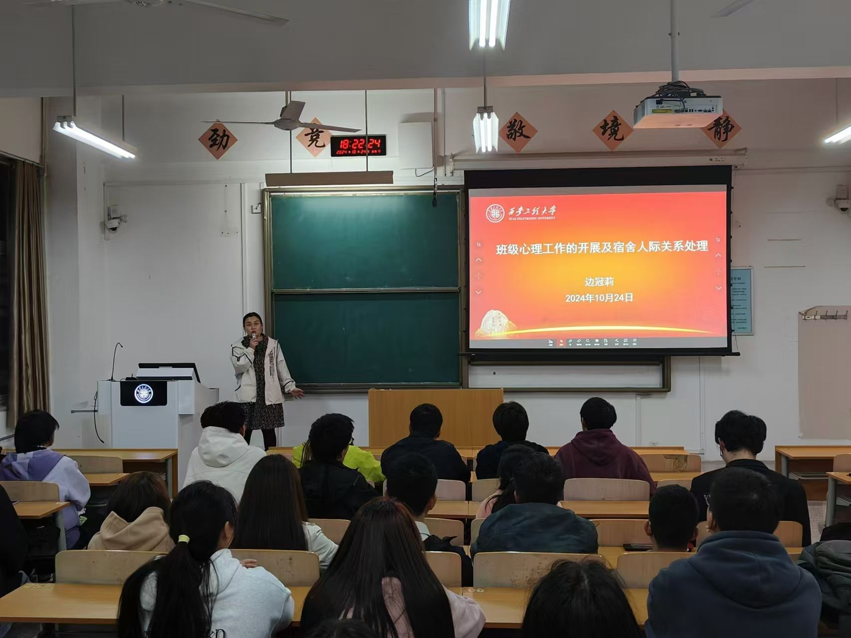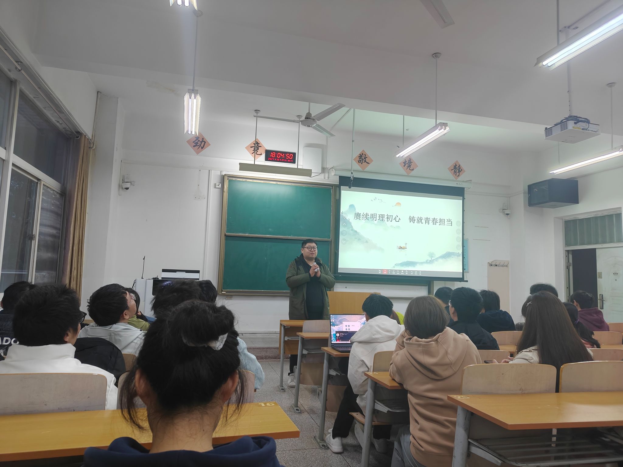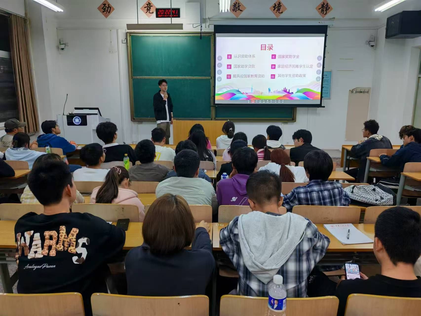 院学工办主任曹智宇在第一讲中强调了班干部的重要性和使命,指出班干部是老师与同学沟通的桥梁和纽带,要充分发挥先进模范带头作用,严于律己,善于团结同学,共同营造良好的班级氛围。同时他鼓励新生班干部在班级建设中要勇于担当,积极作为,为学院和班级的发展贡献力量;心理辅导员边冠莉、院团委书记田宇飞、资助辅导员宋琦分别从班级心理健康教育工作开展和人际关系调节、共青团活动和第二课堂、学校资助政策和体系等为主题进行了讲授;2021级统计学1班团支书、推免研究生张一帆和优秀学生干部代表、支教推免生张子豪,分别结合自身的学生干部经历和成长历程,就协调学习、工作之间的关系,如何更好地为同学服务,以及怎样在工作中不断提升自己的综合素质和工作能力做了分享。
