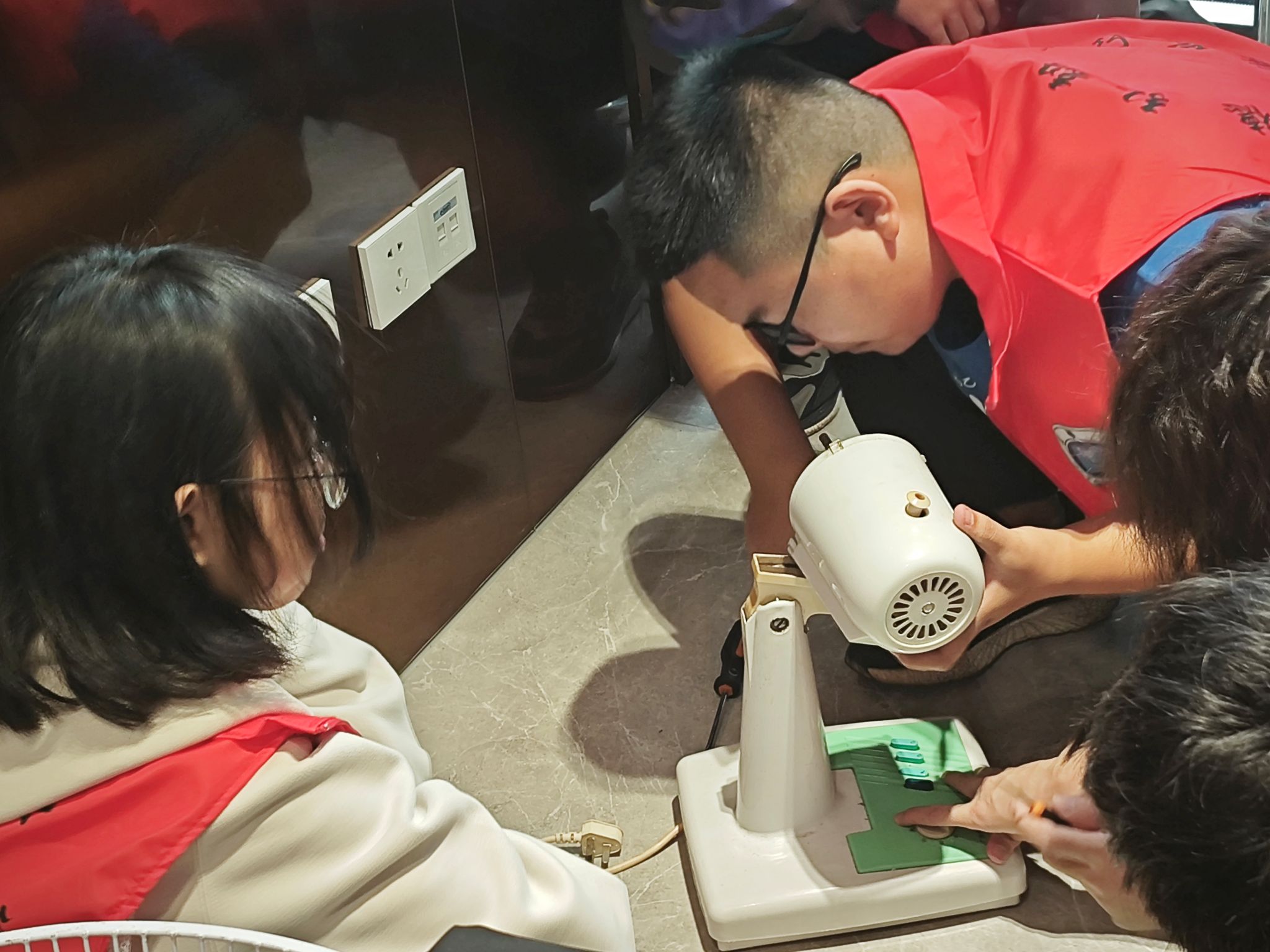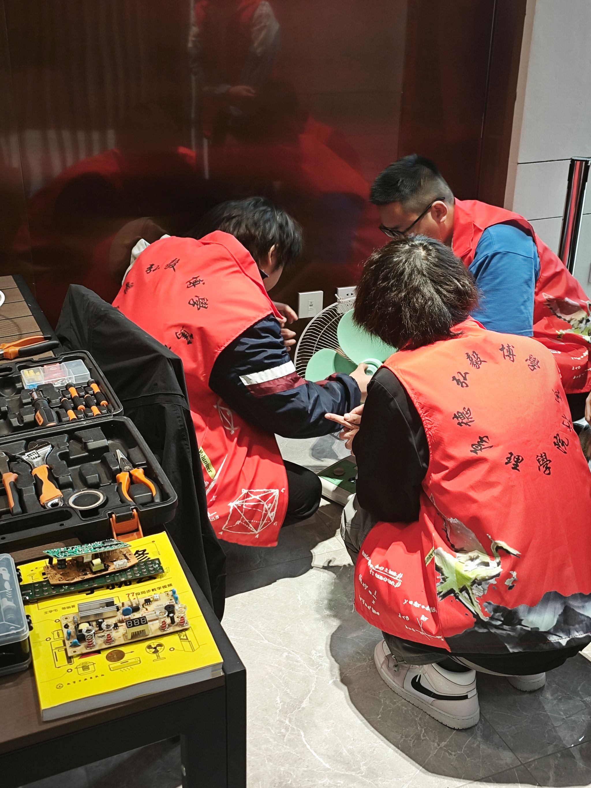 在此次维修活动中,青协志愿者们分两队分别来到社区旗下的中海小区和骊山下院子两个小区开展工作,维修电器主要包括年久失修的电风扇、烧水壶、高压锅等常用小电器。面对各种各样的故障家电,小组成员分工明确,有的标记家电,有的拆卸部件,有的检查电路,有的排除故障。在维修过程中,志愿者们还耐心地向居民讲解日常维护和简单修理的小技巧,帮助居民增长知识。