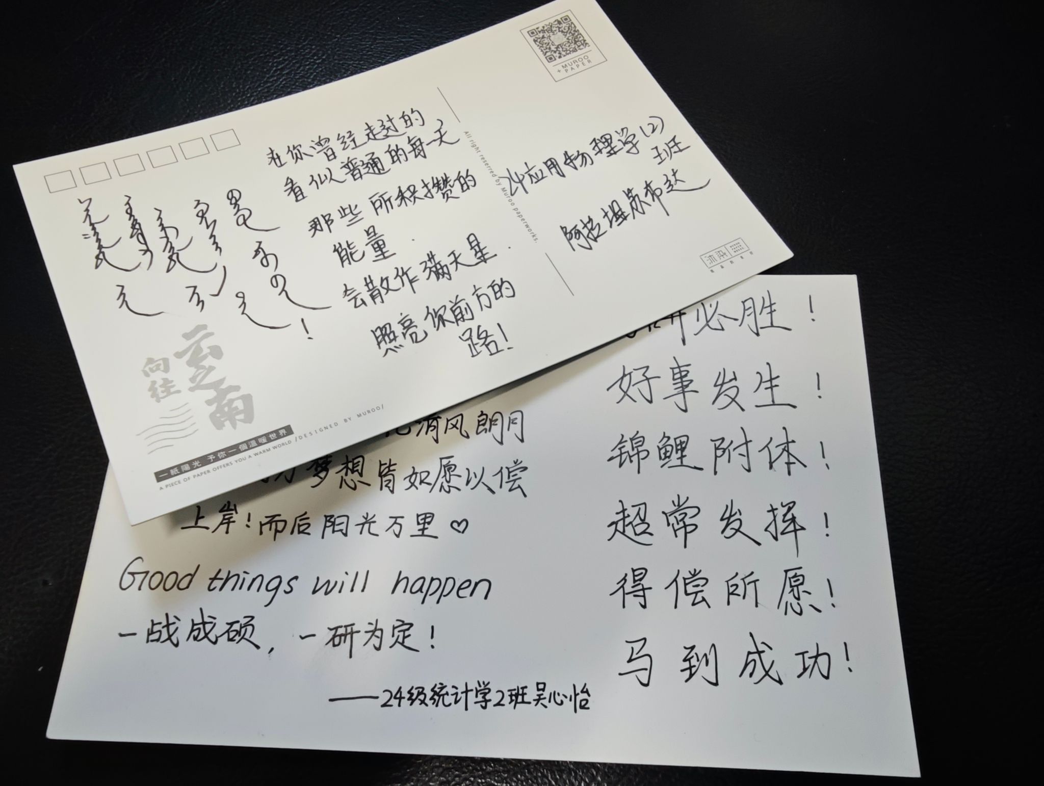 活动开始时,同学们有序领取了卡片,随后前往指定区域。他们带着对考研学子的深情厚意,专注地在卡片上书写着心中的真挚话语。同学们将祝福转化为文字,流露出激情澎湃的鼓励、细致周到的提醒,以及对未来充满希望的憧憬。每一张卡片都充满创意、充满活力,凝聚着同学们之间深厚的情谊,仿佛被赋予了温暖与力量,足以驱散冬日的寒冷,缓解备考的疲惫。