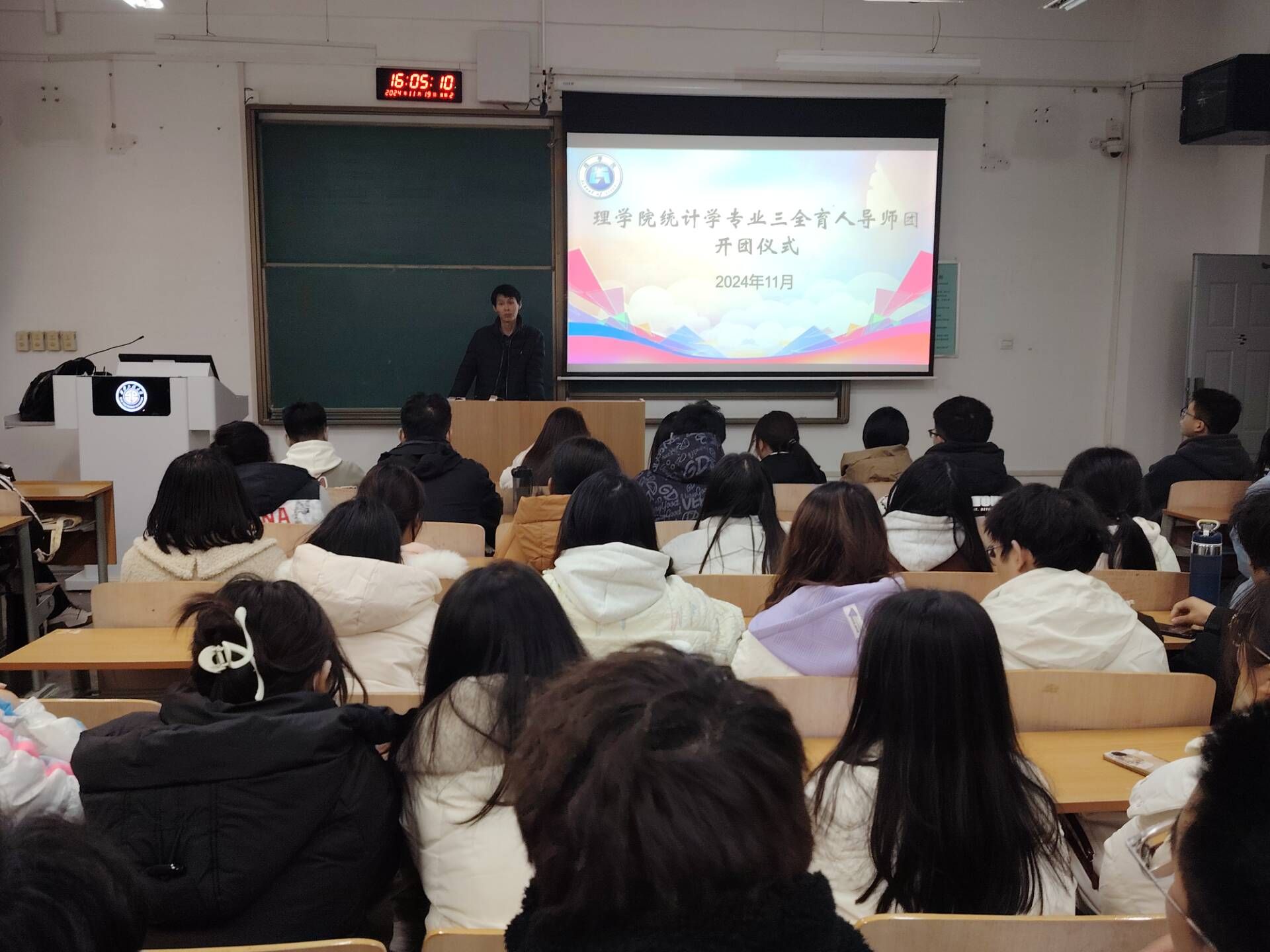 11月19日下午,AC米兰中文统计学专业在临潼校区A102教室举行2024-2025学年“三全育人”导师团开团仪式。统计系主任、导师团团长韩有攀出席本次仪式,统计学专业2024级全体学生和2023级部分学生参加,会议由导师团秘书宋琦主持。
