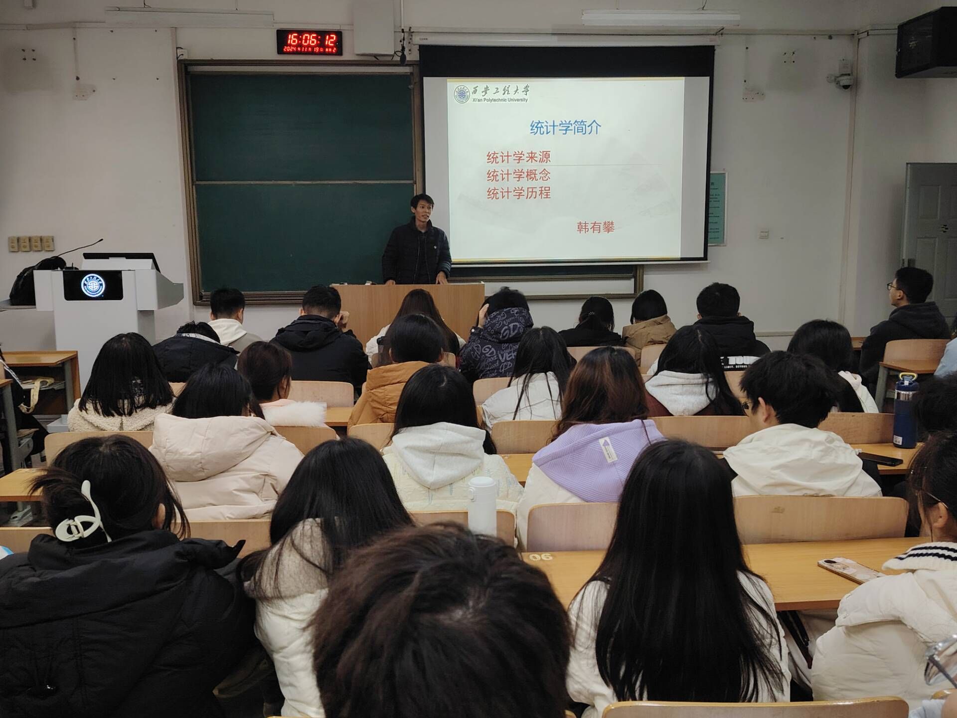 会上,韩有攀首先向同学们讲解了“三全育人导师团”成立的背景、重要意义、导师团成员构成、导师情况和工作职责。接着,他以专题讲座的形式,详细介绍了统计学的基本概念、发展历程以及在现代社会中的应用。解析了统计学的专业特点和专业方向,并结合自身多年教学和实践经验,深入阐述了统计学专业的就业方向与就业前景,提升了学生对所学专业的认同感,激发了同学们学好专业知识与技能的内在驱动力。导师团秘书宋琦表示“三全育人导师团”的组建始终坚持以学生为中心的理念,导师们将会以自己所有的经验和学识为同学们在思想政治教育、学业指导、创新创业指导、心理健康教育、职业生涯规划与就业指导、综合能力提升等方面解答疑惑迷茫并提供有效的解决方法,帮助同学们更好地掌握自己未来的方向。