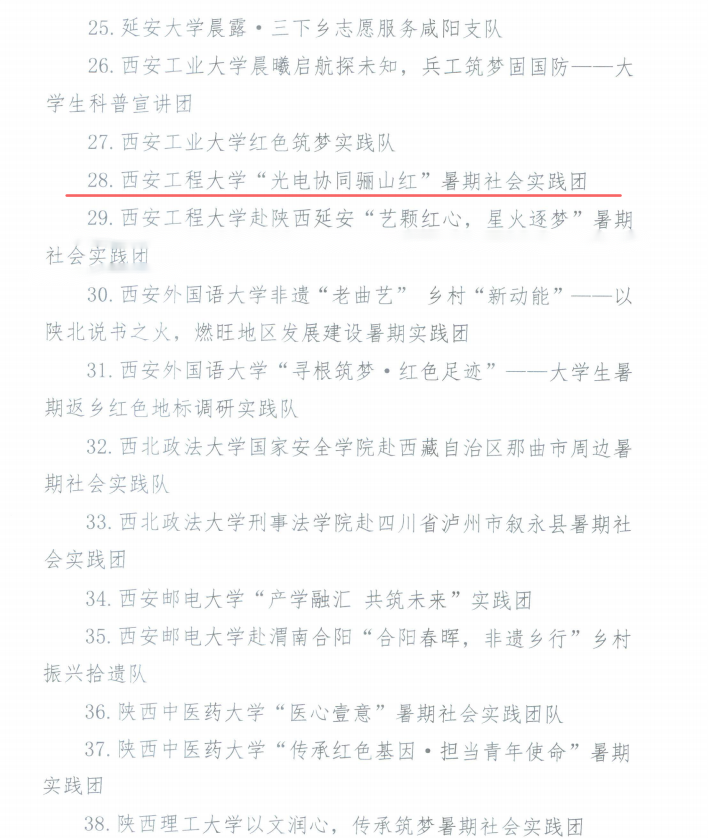 近日,陕西省委宣传部、省教育厅、团省委、省学联联合通报表扬2024年陕西省大学生暑期文化科技卫生“三下乡”社会实践活动示范学校、优秀单位、标兵团队、优秀团队、先进个人、优秀调研报告,我院卢定泽教授指导的“光电协同骊山红”暑期社会实践团荣获2024年度“省级优秀团队”(学校获评2项)。