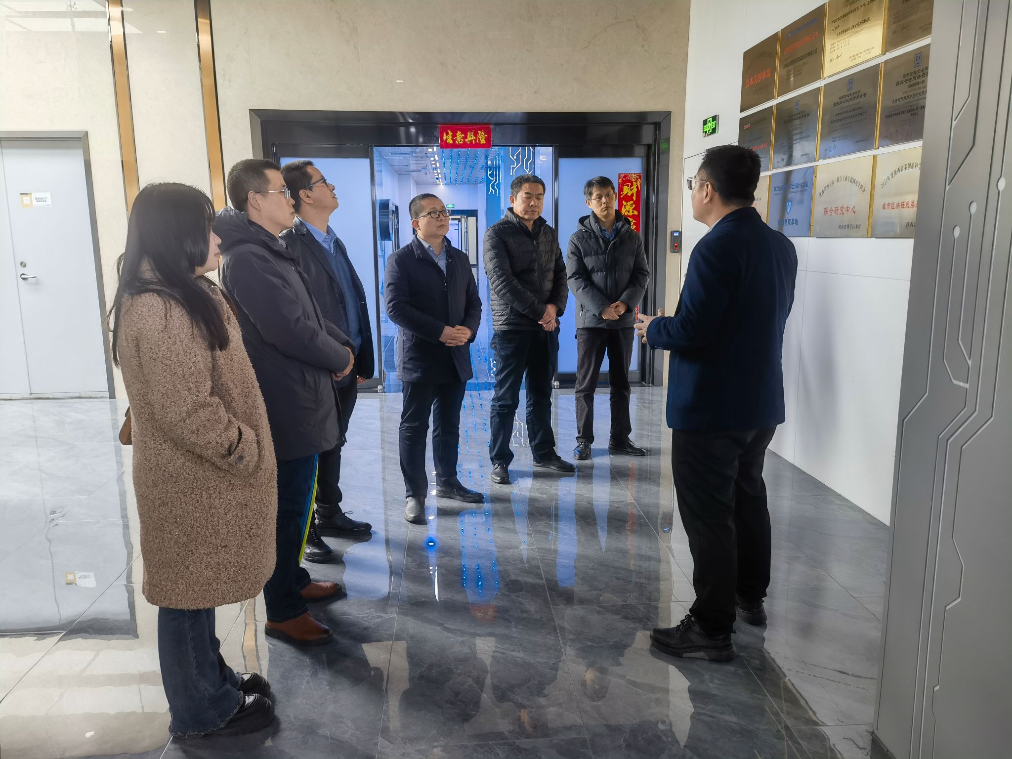 在启明星辰信息技术集团股份有限公司西安分公司,学院一行在启明星辰校企合作总监冯德胜等人陪同下,参观了启明星辰西安安全运营中心的荣誉室、可信区块链数据安全、工业互联网网络安全实验室等。在座谈交流中,马盈仓介绍了学院的基本情况,冯德胜介绍了公司的发展历程、业务开展、产学研合作等情况。双方就服务学生实习就业、加强校企合作、开展协同育人等方面进行了深入交流,并达成了初步合作意向。