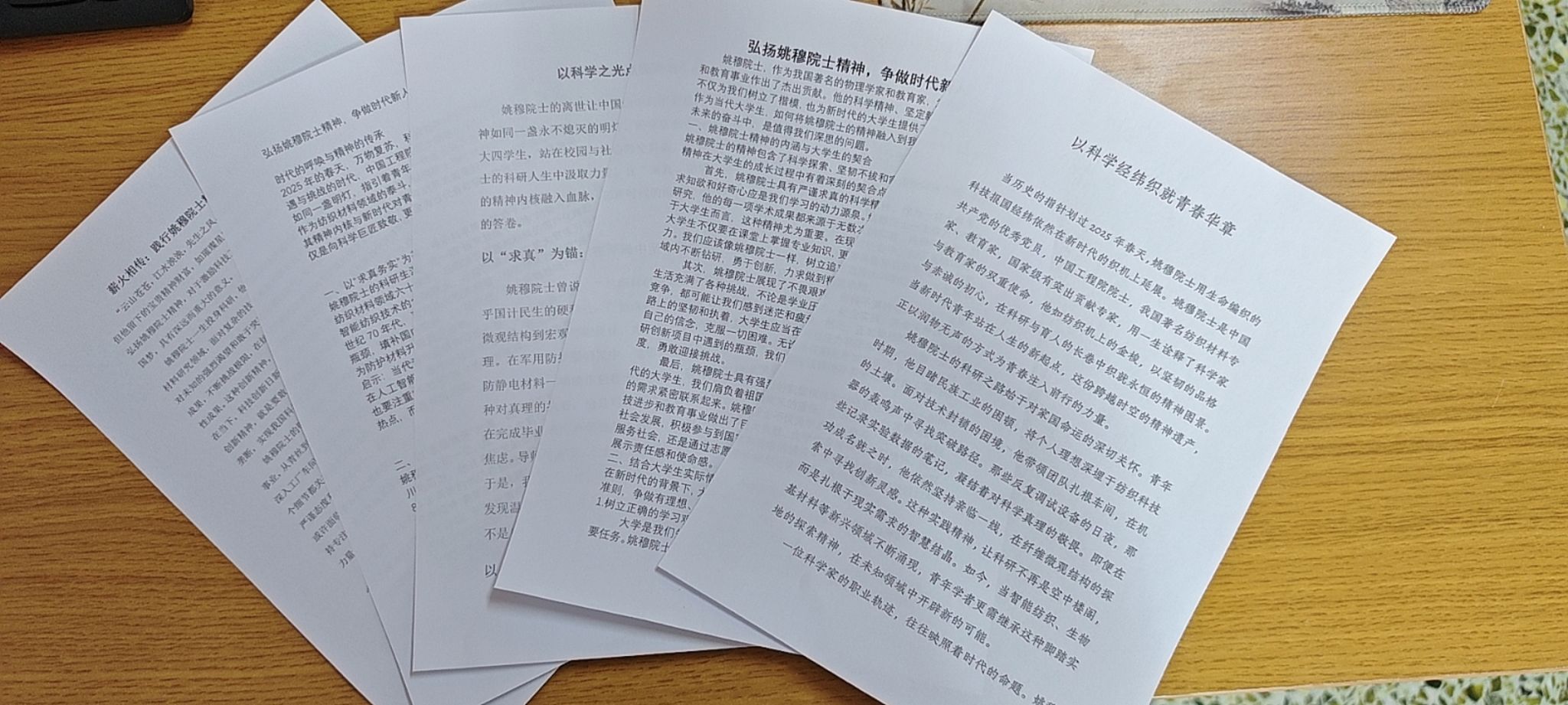 本次征文活动,得到了广大学生的积极响应。同学们认真准备、精心创作,所提交的作品不仅立意高远、内容积极向上,更展现出独特的视角与创新的思维,充分体现了当代大学生对姚穆院士“家国情怀、师者风范、科学精神、崇高品格”的深刻理解与思考。同学们纷纷表示要深刻学习“丹心育人 鞠躬尽瘁”的高尚品格,将其转化为实际行动,为国家的科技进步和社会发展贡献自己的青春力量。(撰稿:田宇飞 审稿:文毅)
