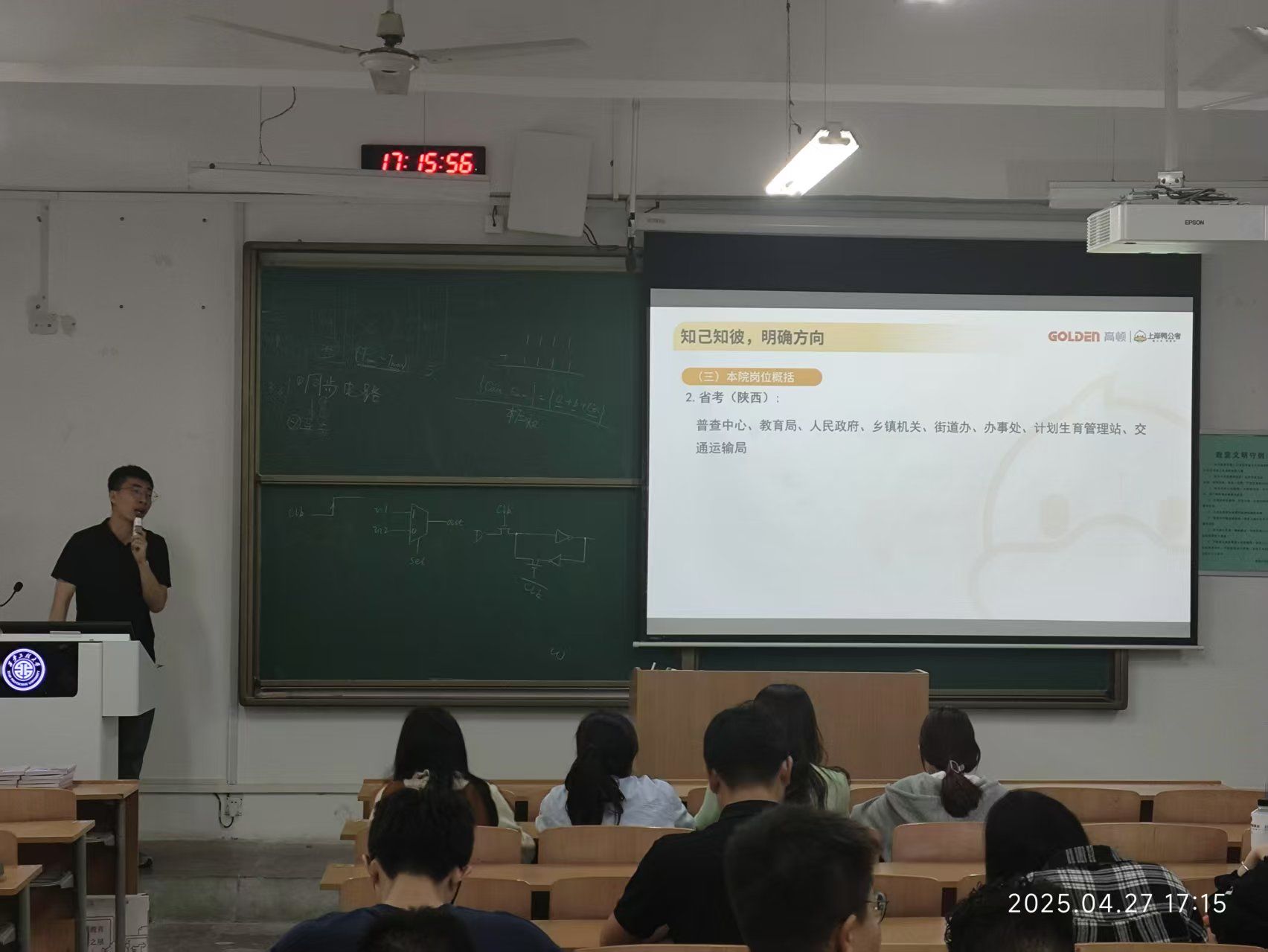 讲座中,聂国彭立足全国和陕西省考情数据,系统解析国考、省考、选调生、事业编四大招录体系的核心差异与报考策略。他结合数学、物理等理学专业特性,着重介绍了教师编制的公考政策和策略,并聚焦笔试、面试两大环节的能力提升与应试策略,分享了“6个月冲刺版”与“12个月长线版”备考计划,希望同学们合理安排行测、申论、专业科目学习节奏,还提醒同学们公考切忌盲目跟风,要做好选择,踏实备考;曹智宇在主持中指出:此次讲座是前期在收集同学们学业发展需求中大家提出的建议之一,希望通过一系列的就业帮扶举措,让同学们明确发展定位、理性做好职业生涯规划,助力同学们早日求职成功。
