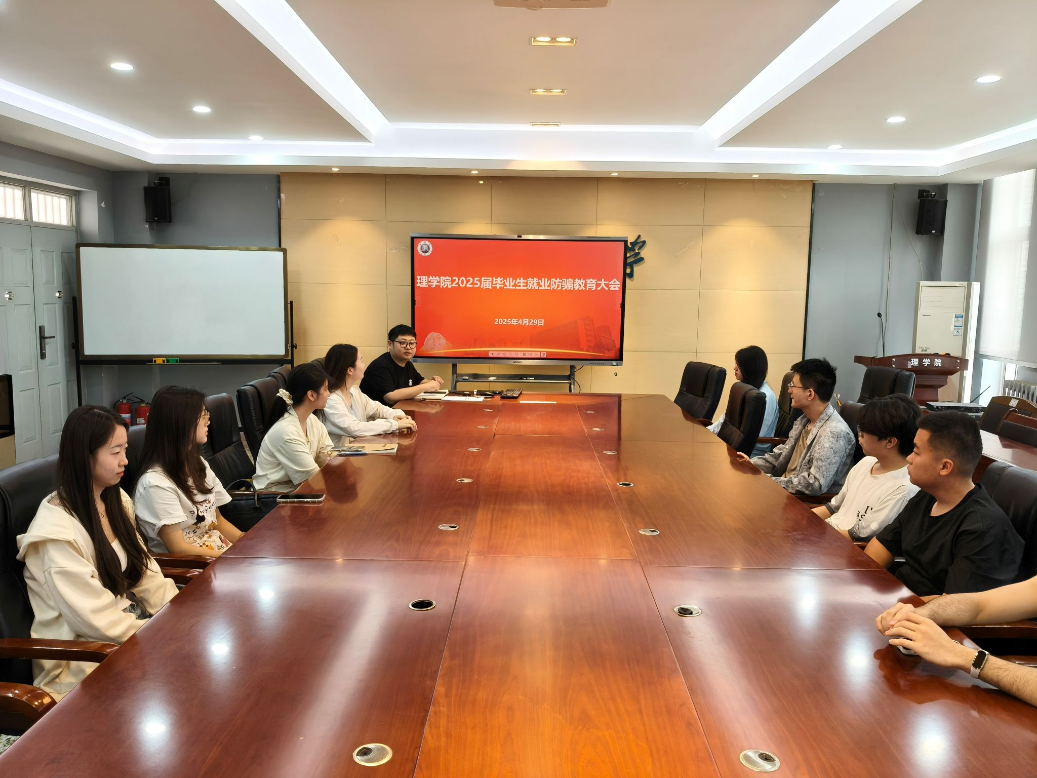 针对2025届毕业生群体,学院专门开展就业防骗教育。曹智宇结合典型案例,剖析求职过程中常见的合同陷阱、虚假招聘、试用期权益侵害等问题,重点解读就业协议签订、劳动合同条款、服务期约定及诚信履约等知识,提醒学生增强风险防范意识。宋晓盼从就业服务角度出发,围绕简历优化、面试技巧、假期去向报备等事项进行详细指导,强调“务必通过正规渠道求职,遇问题及时向学院反馈”。同时要求全体毕业生班干部落实“一对一”安全提醒责任,确保信息传达全覆盖。
