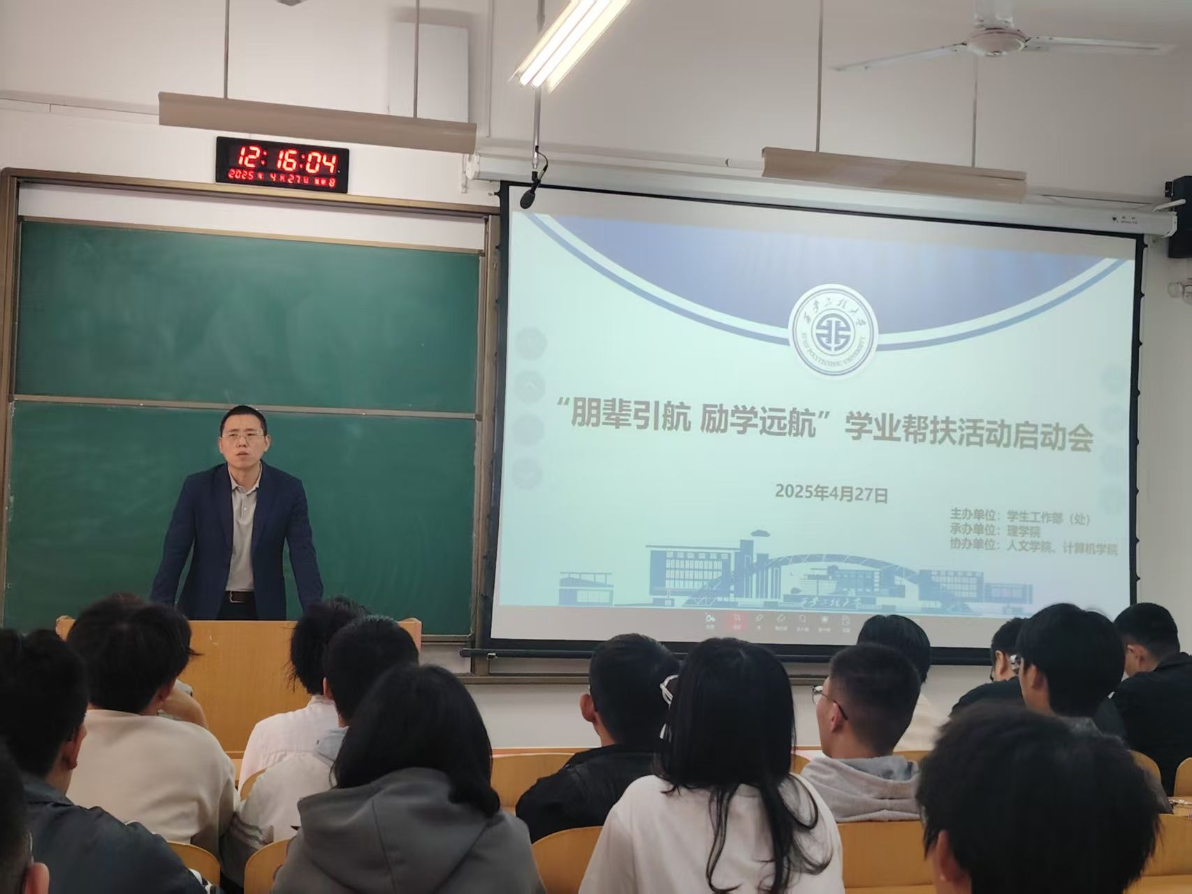 文毅强调了学业帮扶的重要意义,对学业之余发挥专长、倾囊相授、助人自助的全体学业帮扶教员们表示衷心感谢。对参加学业帮扶的同学提出三点要求:一是树立信心,明确目标。端正学习态度,激发自我驱动力,提高自我效能感;二是全情投入、勤学不怠。保持学习热情,夯实基础知识,掌握学习方法,养成良好习惯;三是心怀感恩,传播爱心。珍惜师长朋辈的付出与帮助,传递温暖与善意,在校园中营造互帮互助、共同进步的良好氛围。